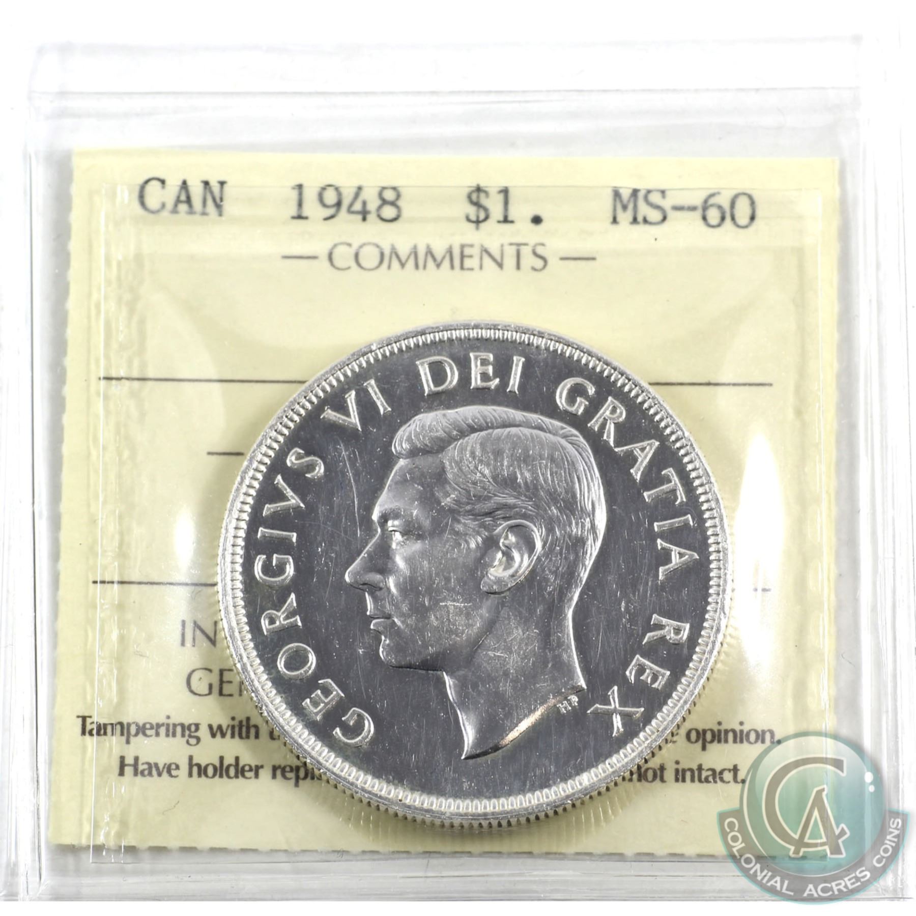 Silver $1 1948 ICCS Certified MS-60! A bright example with bold details on this Key Date!