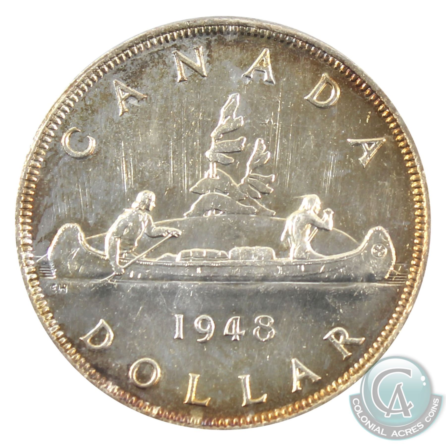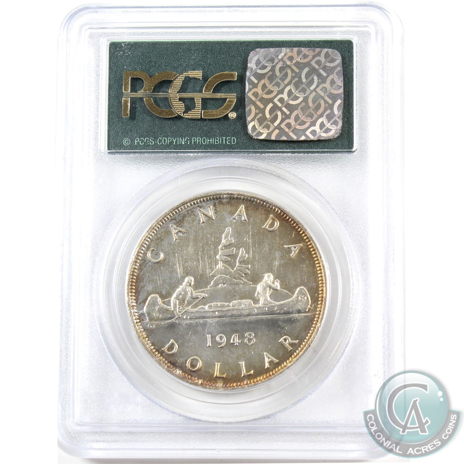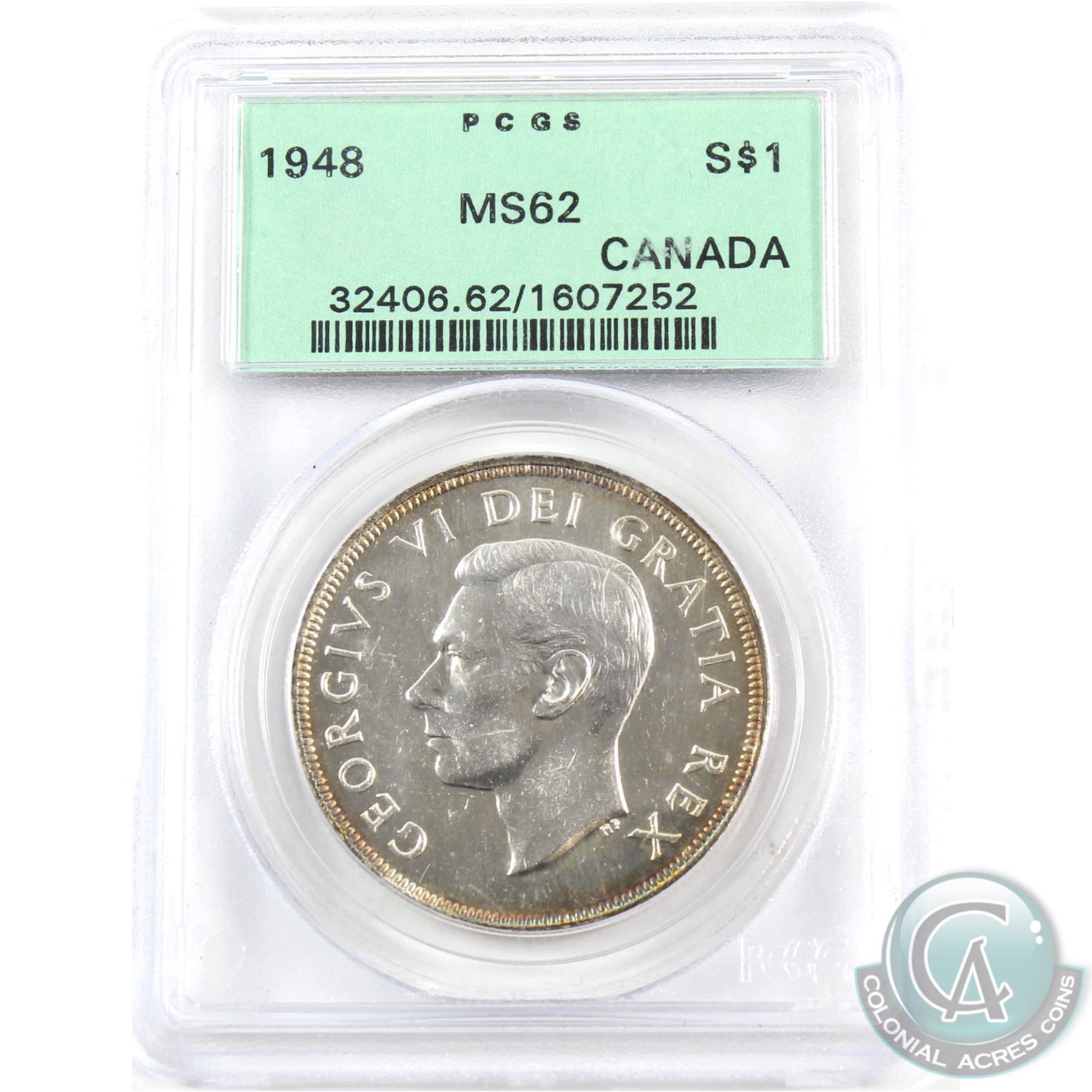 Silver $1 1948 PCGS Certified MS-62. Nice white key date coin with golden toning around both sides of rim.