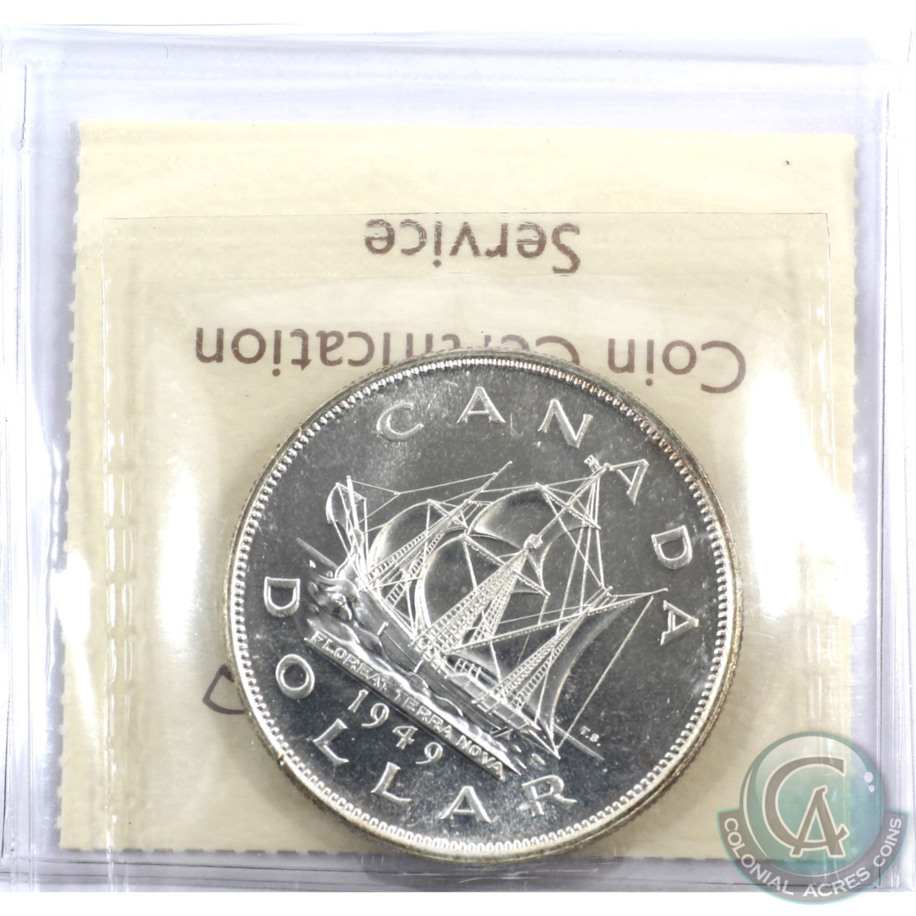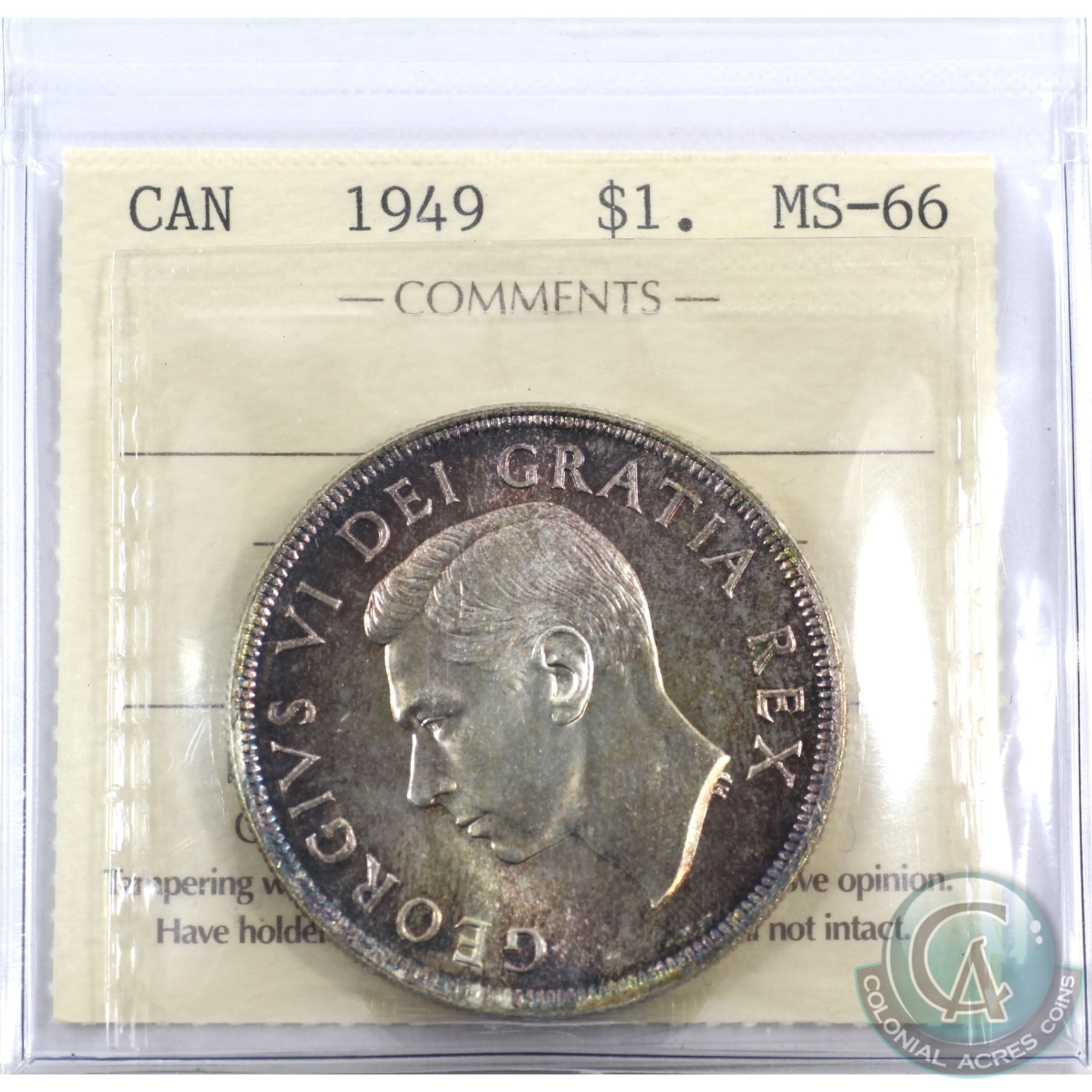 Silver $1 1949 ICCS Certified MS-66. Attractive hues of deep violet and light golden toning.