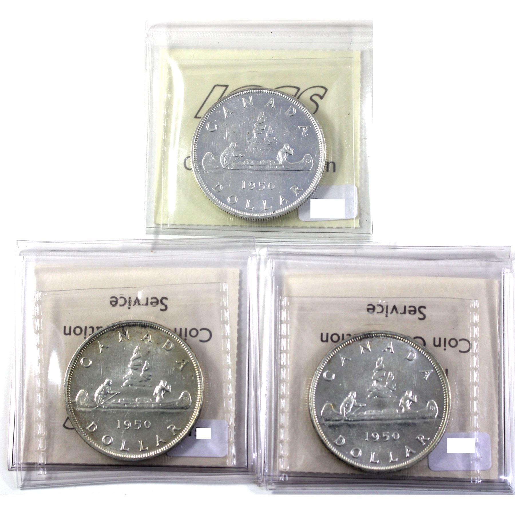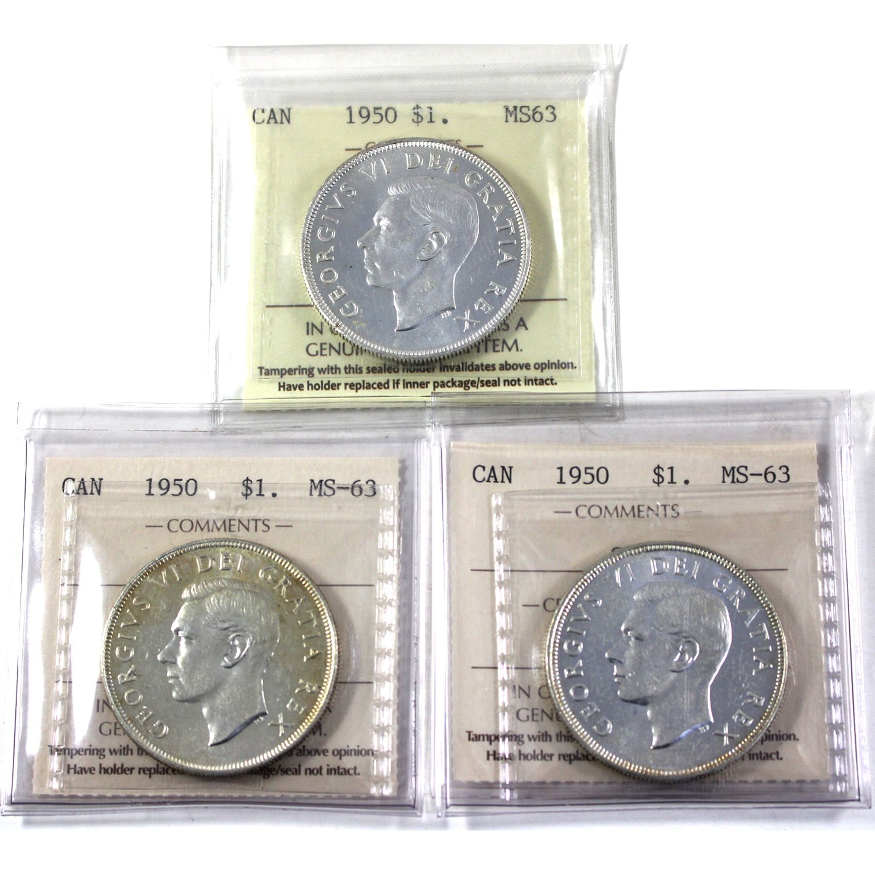 Silver $1 1950, 1950 SWL & 1950 Arnprior ICCS Certified MS63. 3pcs