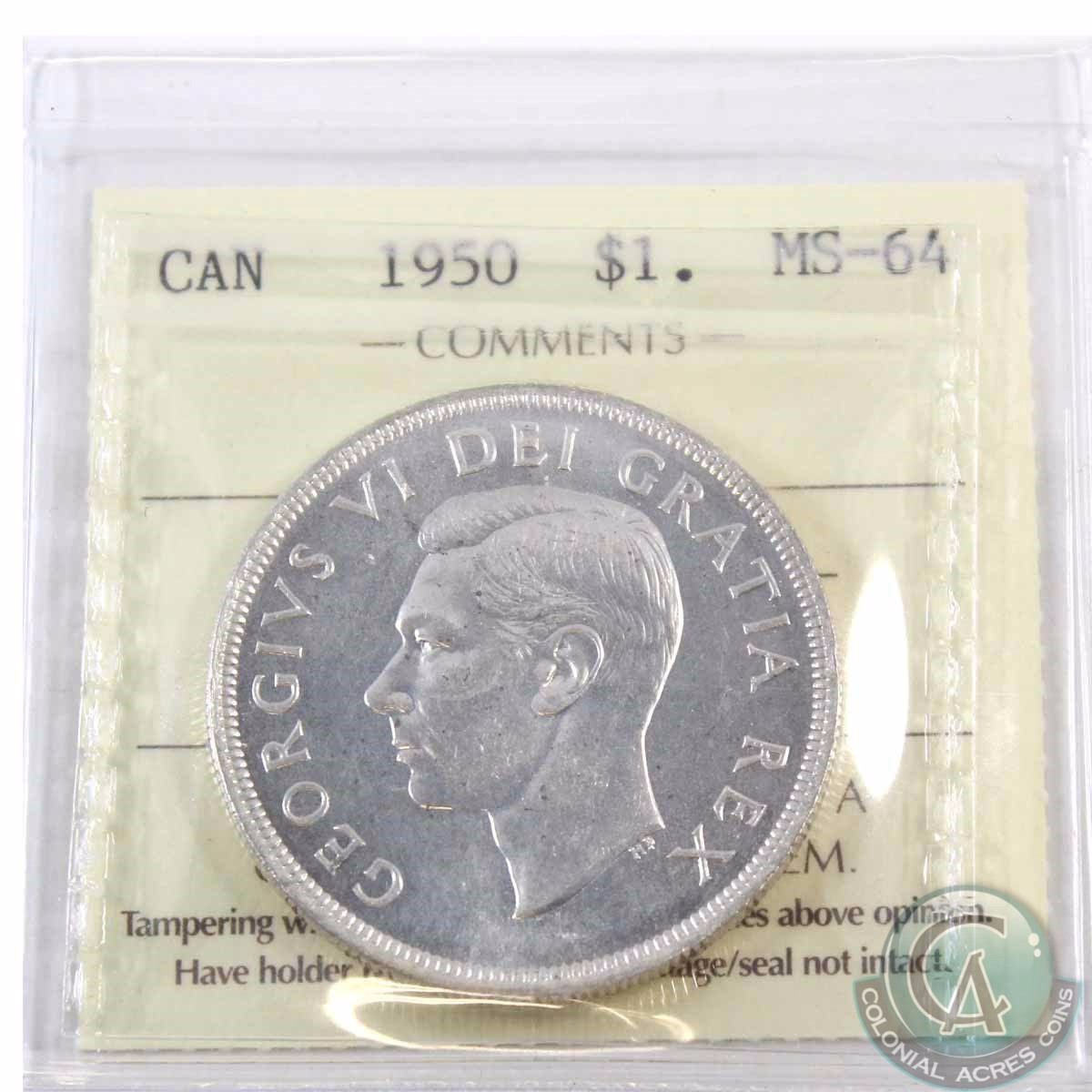 Silver $1 1950 ICCS Certified MS-64