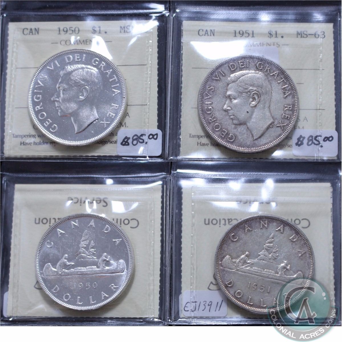 Silver $1 1950 SWL & 1951 SWL ICCS Certified MS-63. 2pcs.