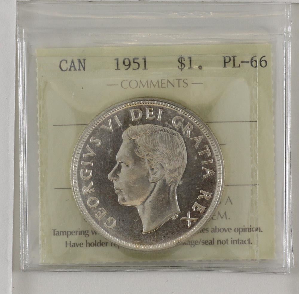 Silver $1 1951 ICCS Certified PL66. A fully struck coin with crisp details.