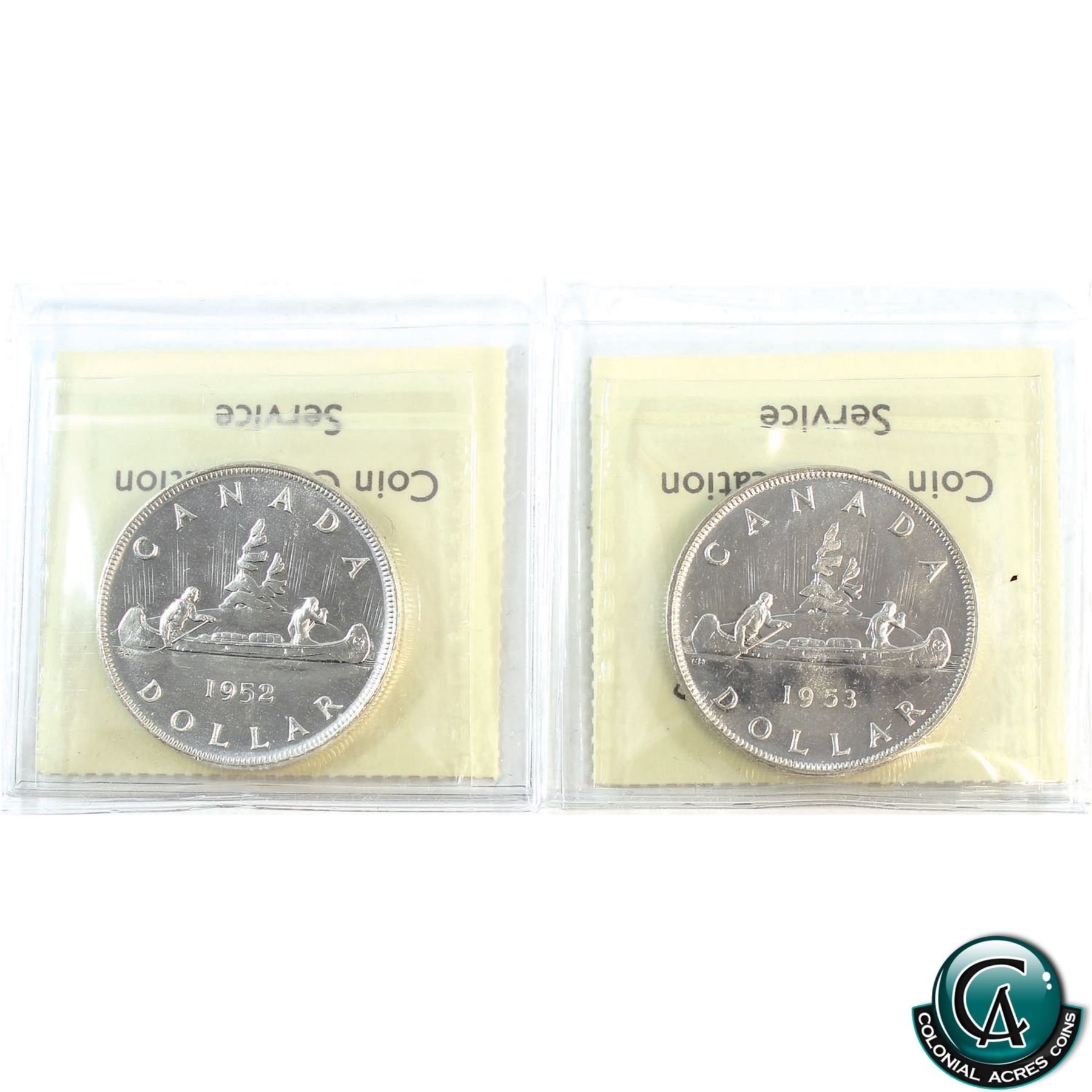 Silver $1 1952 WL & 1953 NSF; Cameo ICCS Certified MS-64. 2pcs.