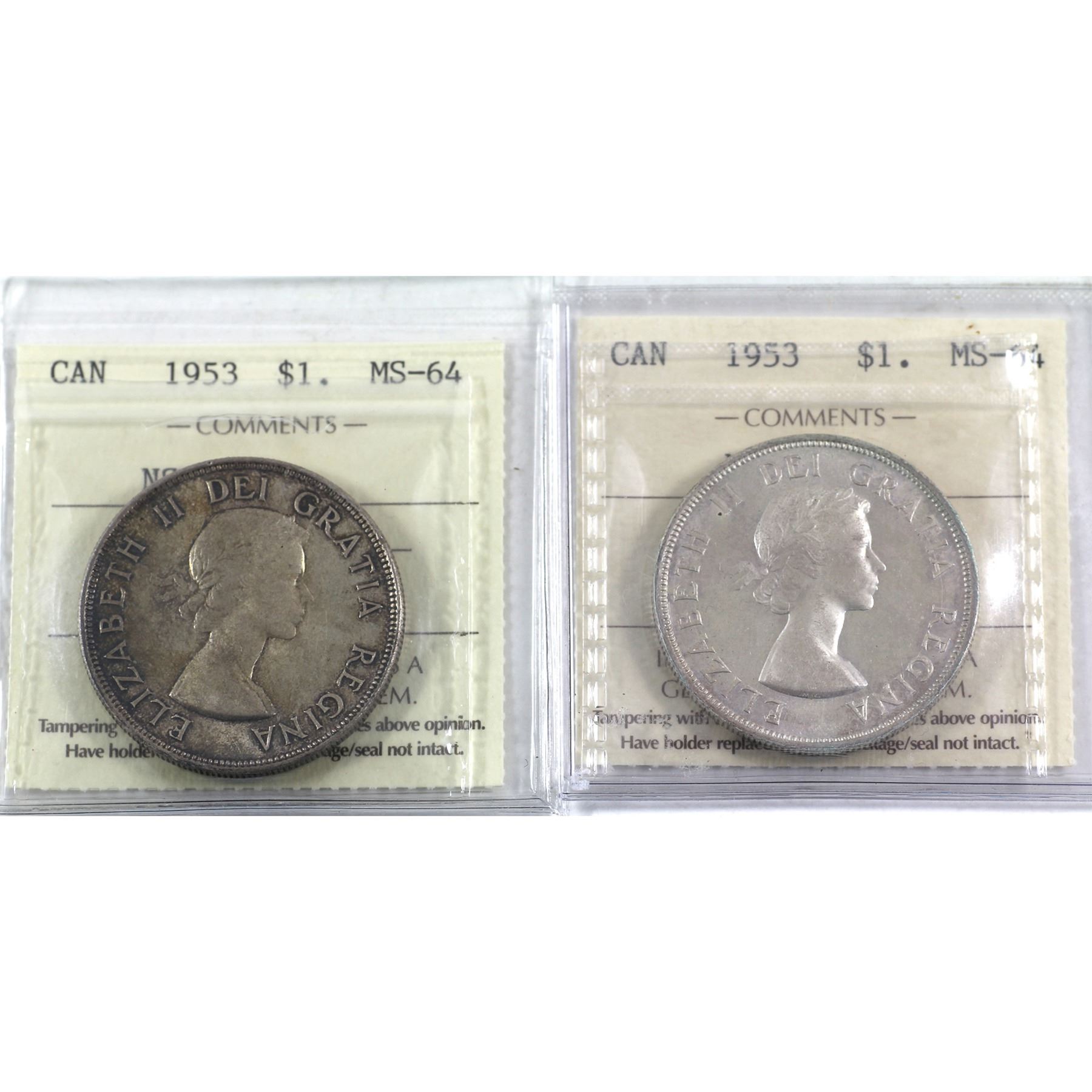 Silver $1 1953 NSF; SWL & 1953 NSF, Cameo ICCS Certified MS-64. Note there is a split on the holder of the NSF Cameo. 2pcs.