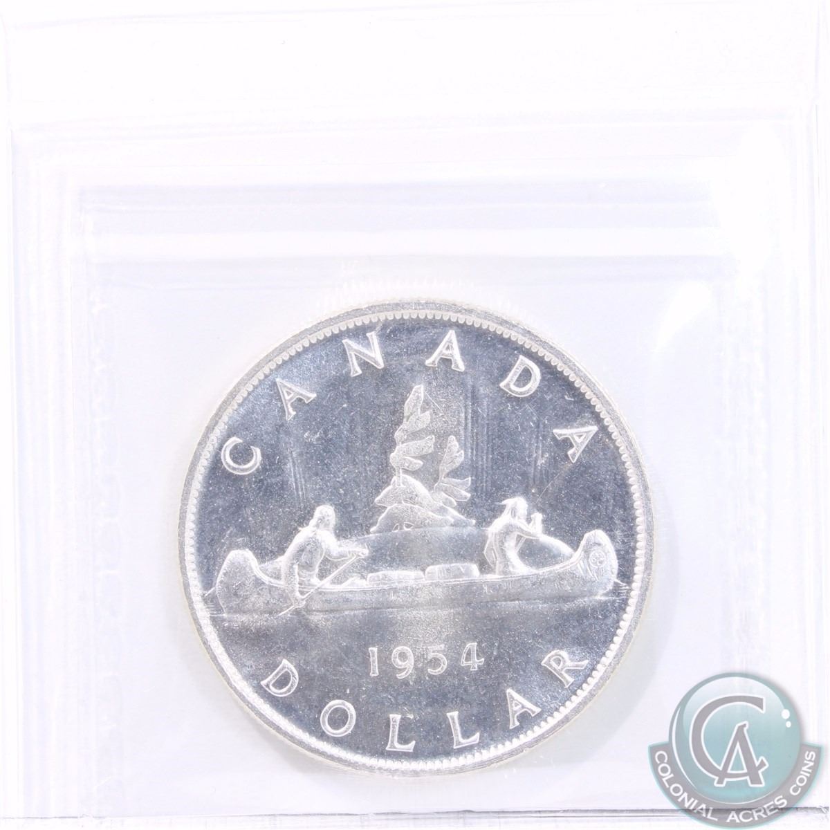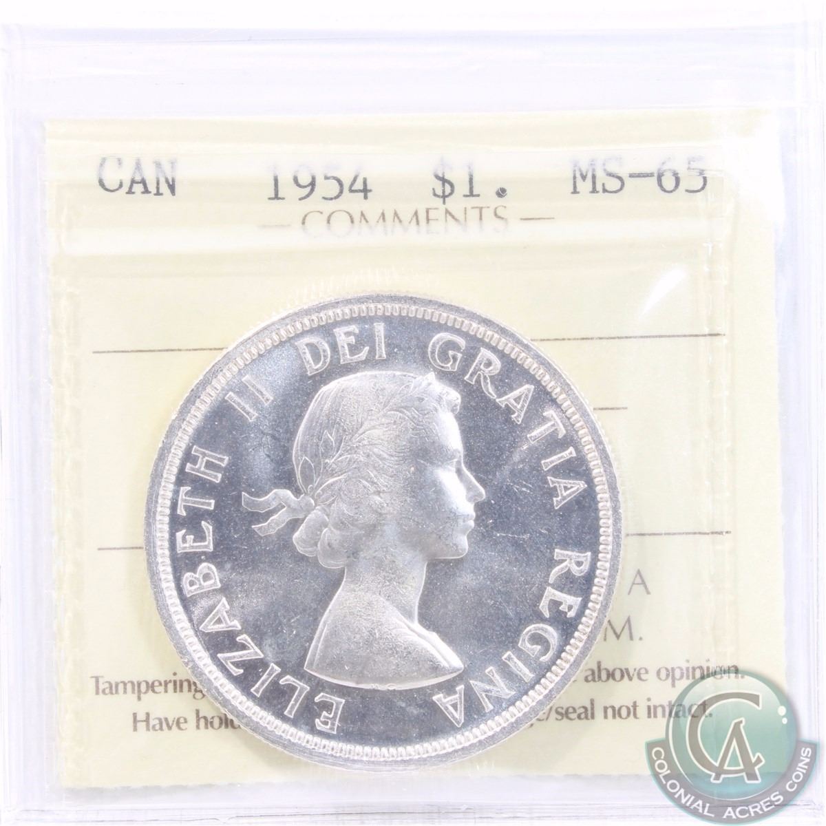 Silver $1 1954 ICCS Certified MS-65. An Attractive bright coin tied for the 2nd highest grade by ICC