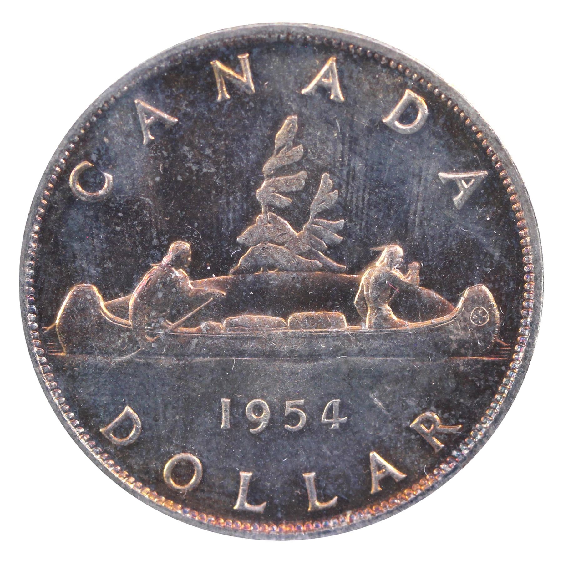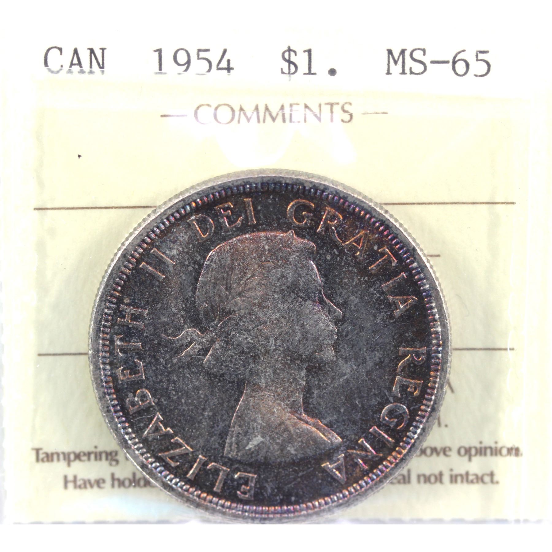 Silver $1 1954 ICCS Certified MS-65! Flashy fields with light golden reds and purple tones. *Scarce*