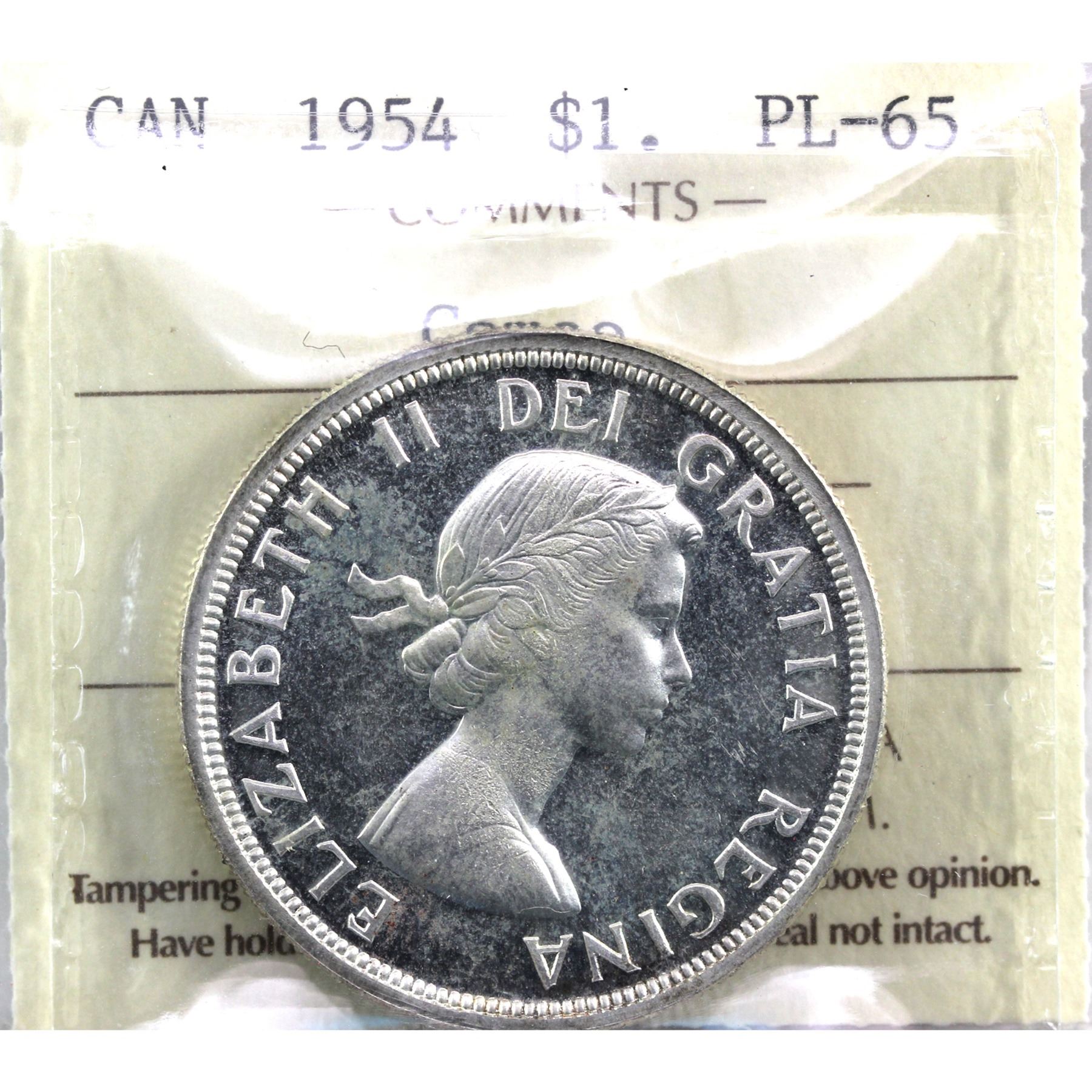 Silver $1 1954 ICCS Certified PL-65 Cameo!