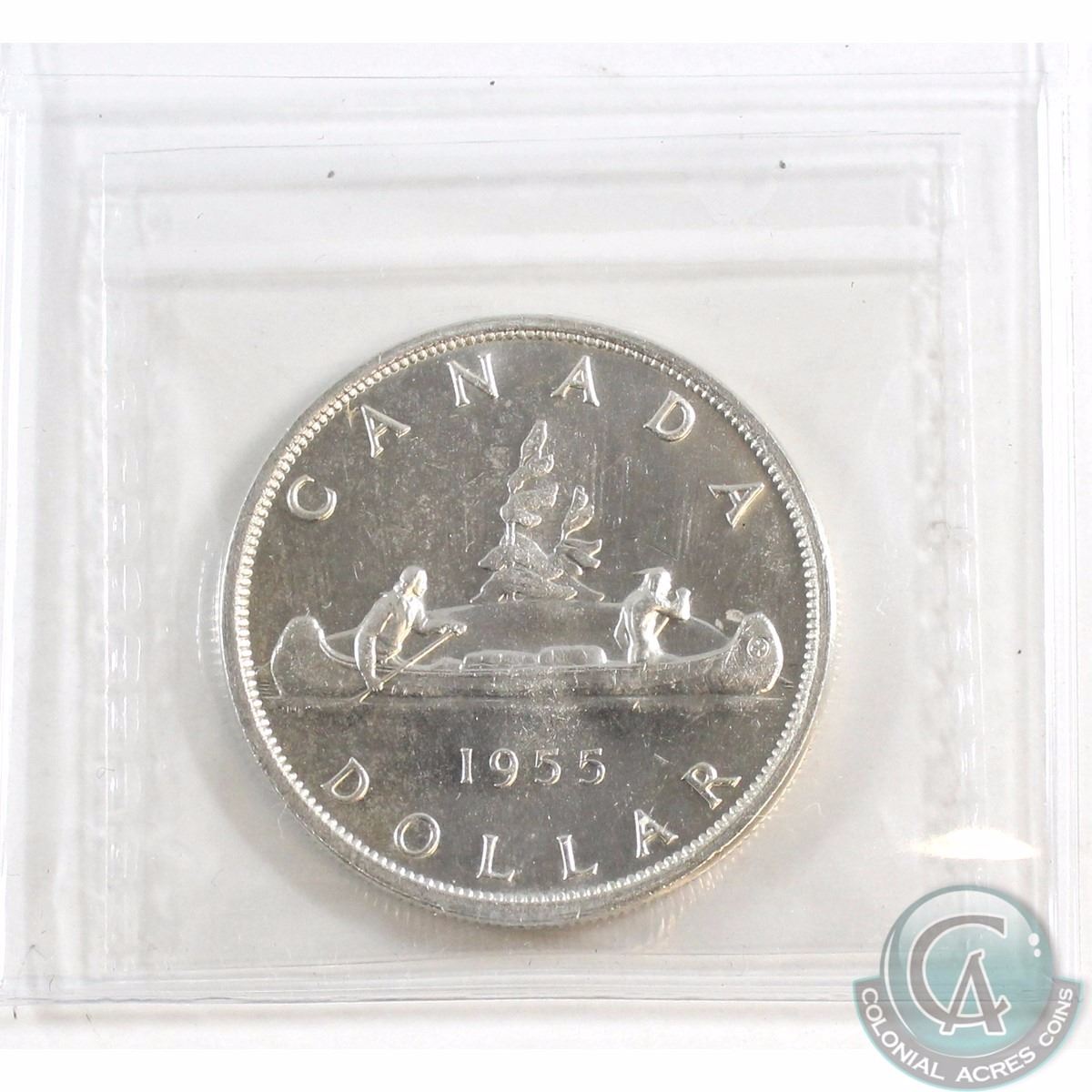 Silver $1 1955 Arnprior with Die Breaks ICCS Certified MS-64. Coin has clean mirror-like fields.