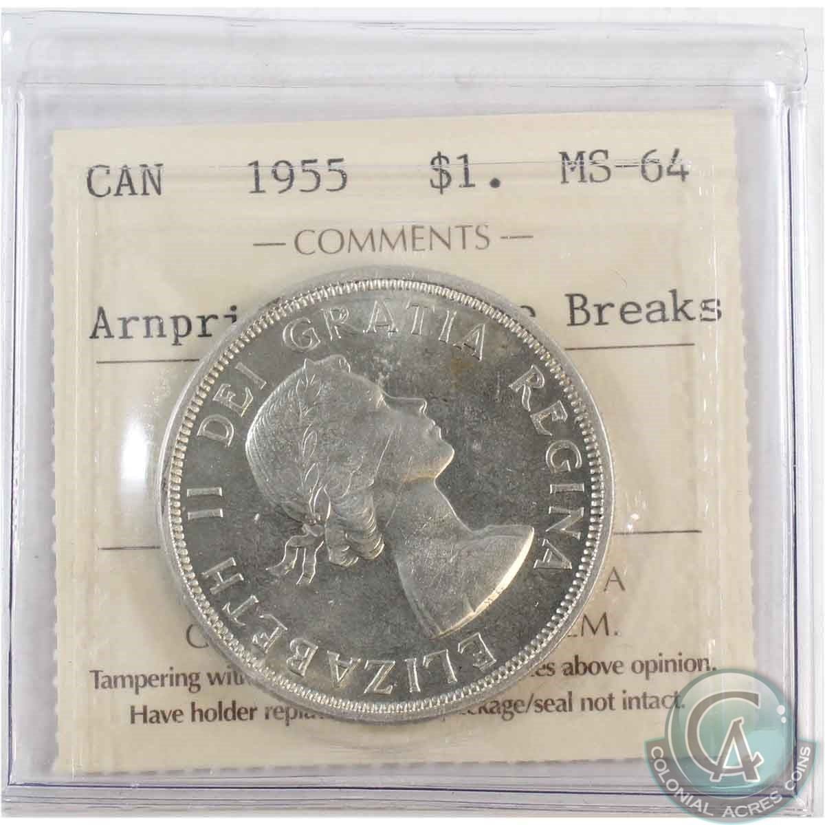 Silver $1 1955 Arnprior with Die Breaks ICCS Certified MS-64