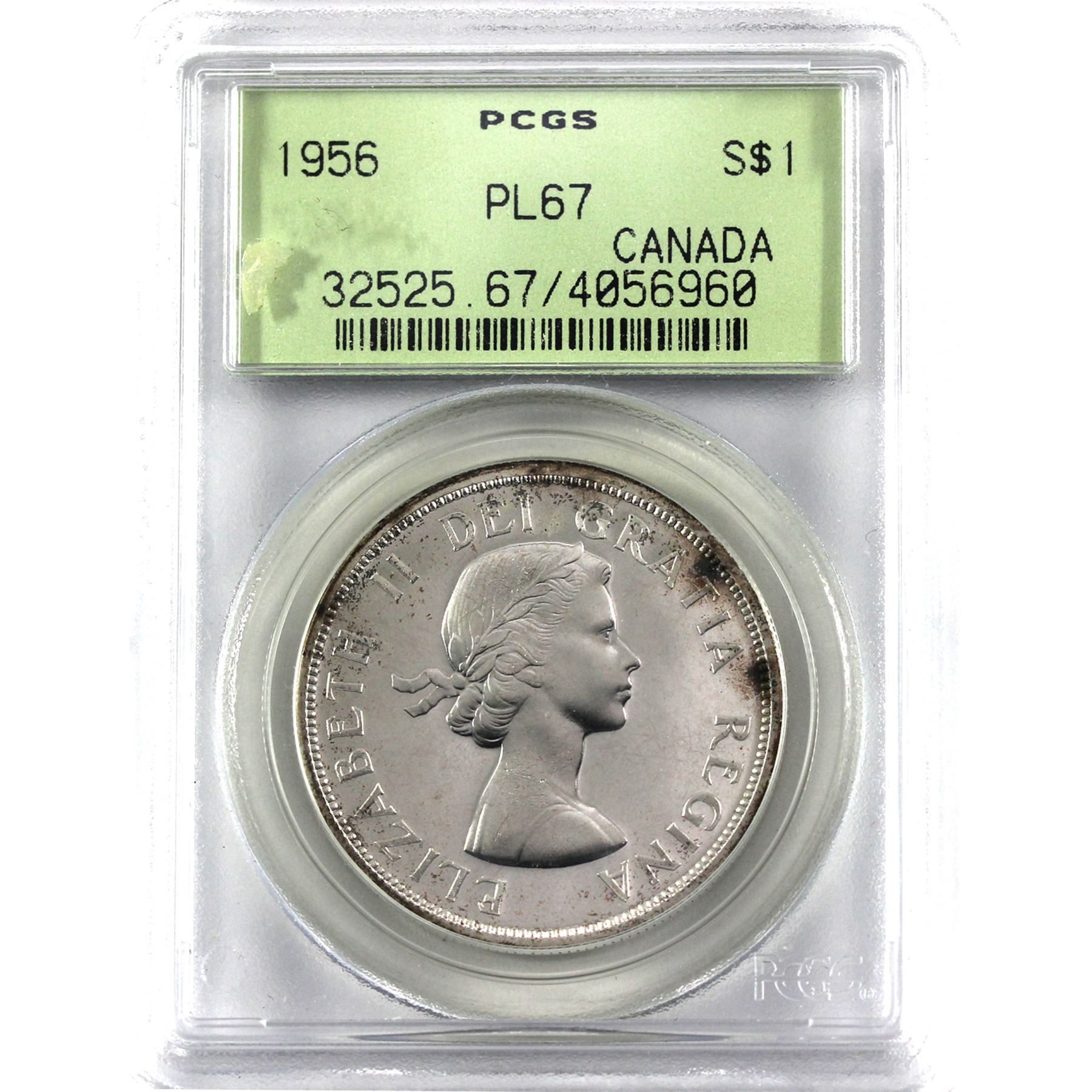 Silver $1 1956 PCGS Certified PL-67. An Attractive high grade coin with light to medium Cameo accents