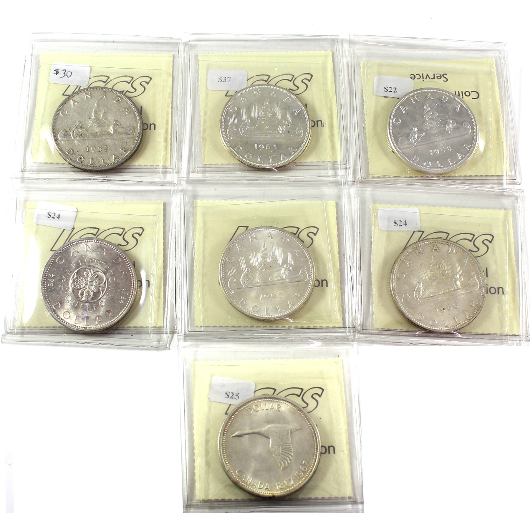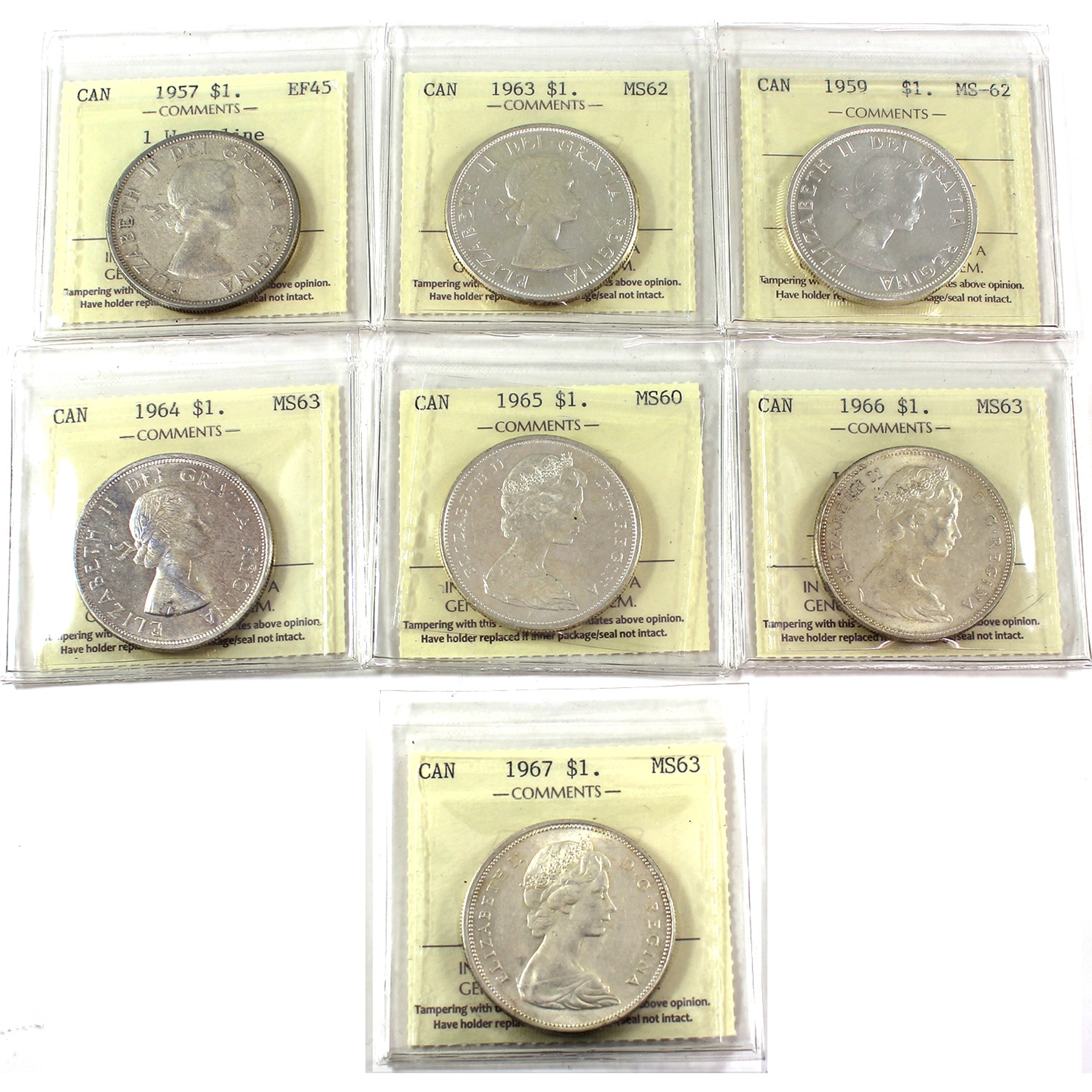INCLUDES: 1957 1 Waterline EF45, 1959 MS62, 1964 MS63, & more! Sold as is; please see images for details. 7pcs.