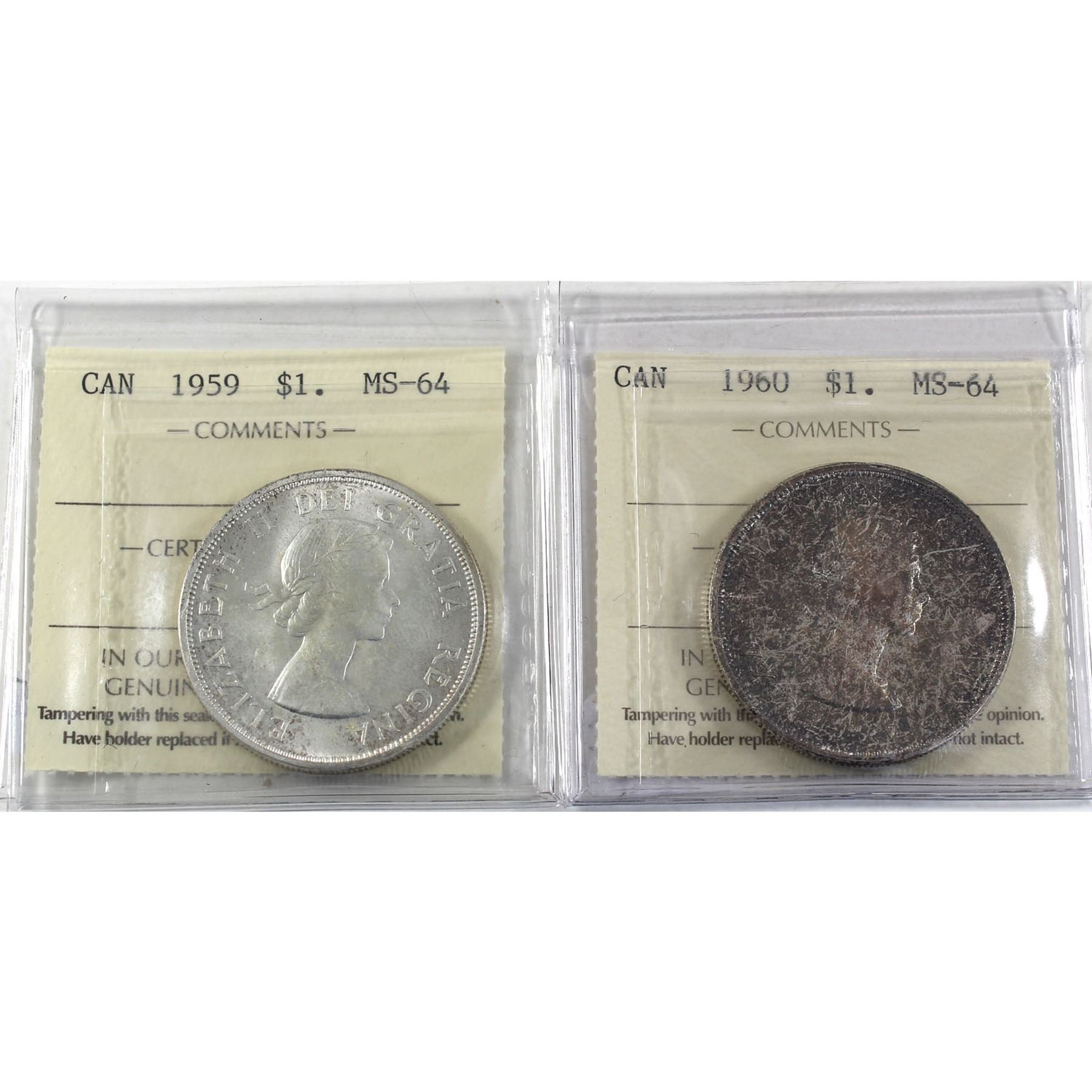 Silver $1 1959 & 1960 ICCS Certified MS-64. 2pcs