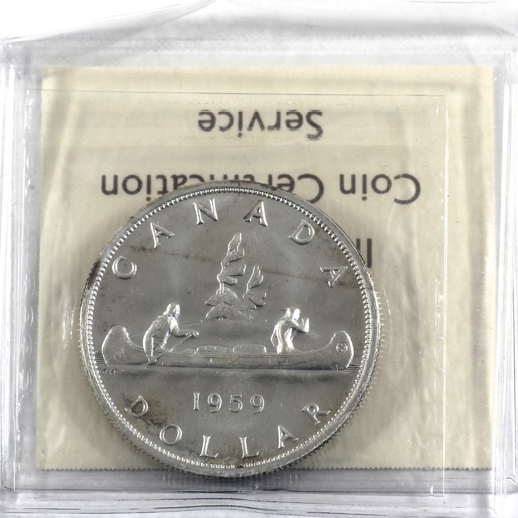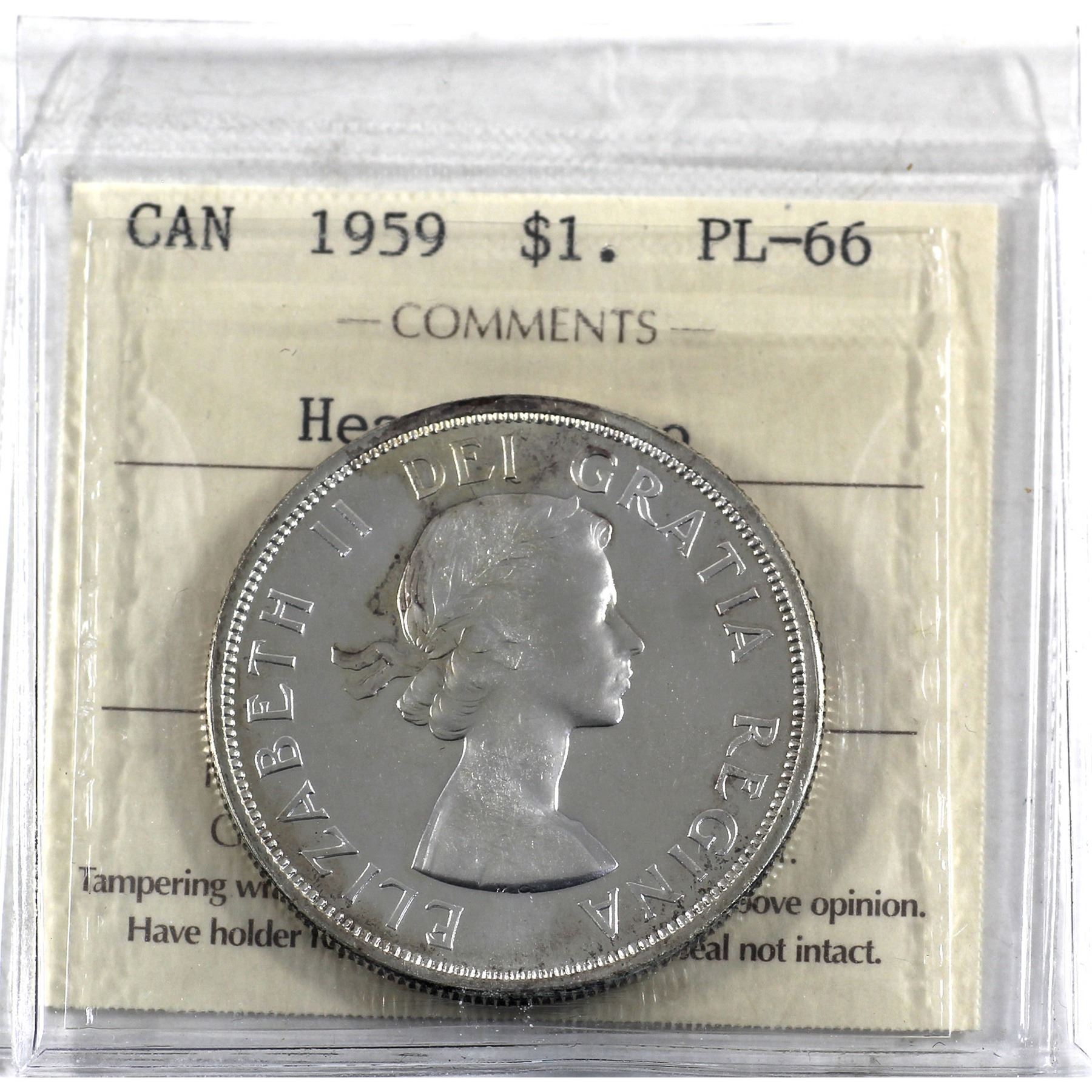 Silver $1 1959 ICCS Certified PL-66 Heavy Cameo. A bright coin with hints of toning.