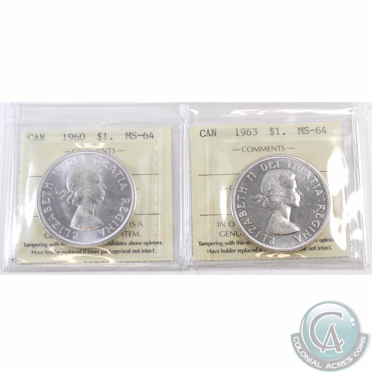 Silver $1 1960 & 1963 ICCS Certified MS-64. 2pcs