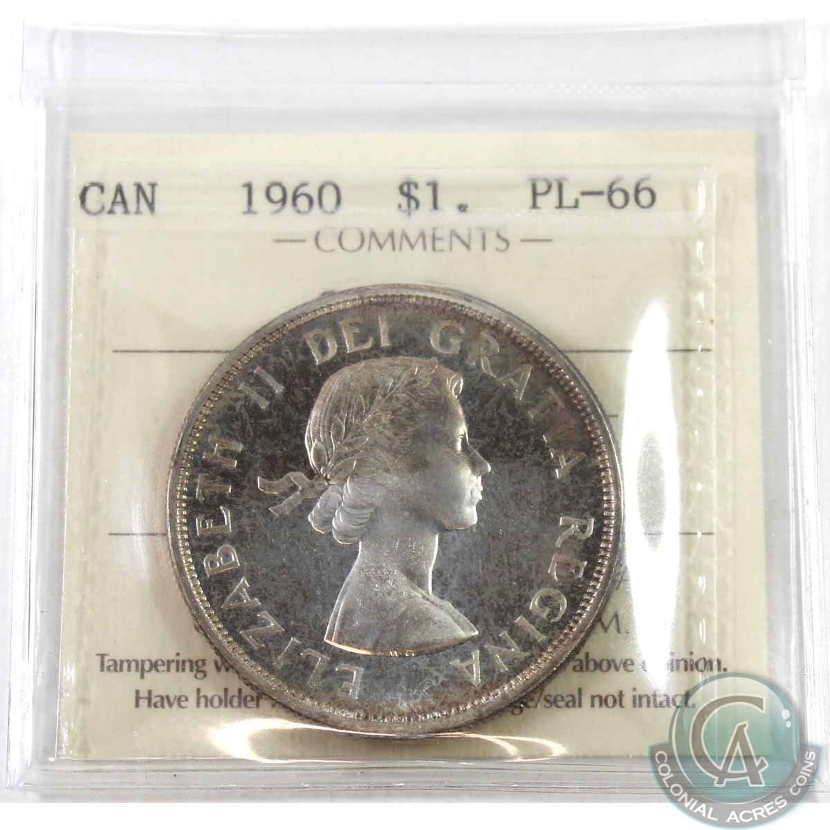 Silver $1 1960 Large Beads ICCS Certified PL-66 Cameo. Appealing coin with nice even toning on the reverse.