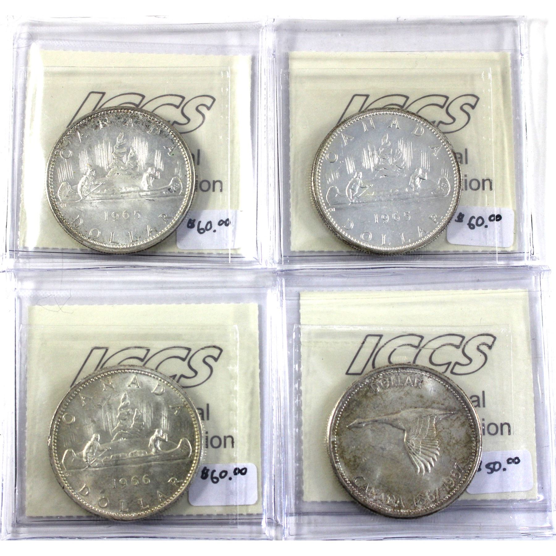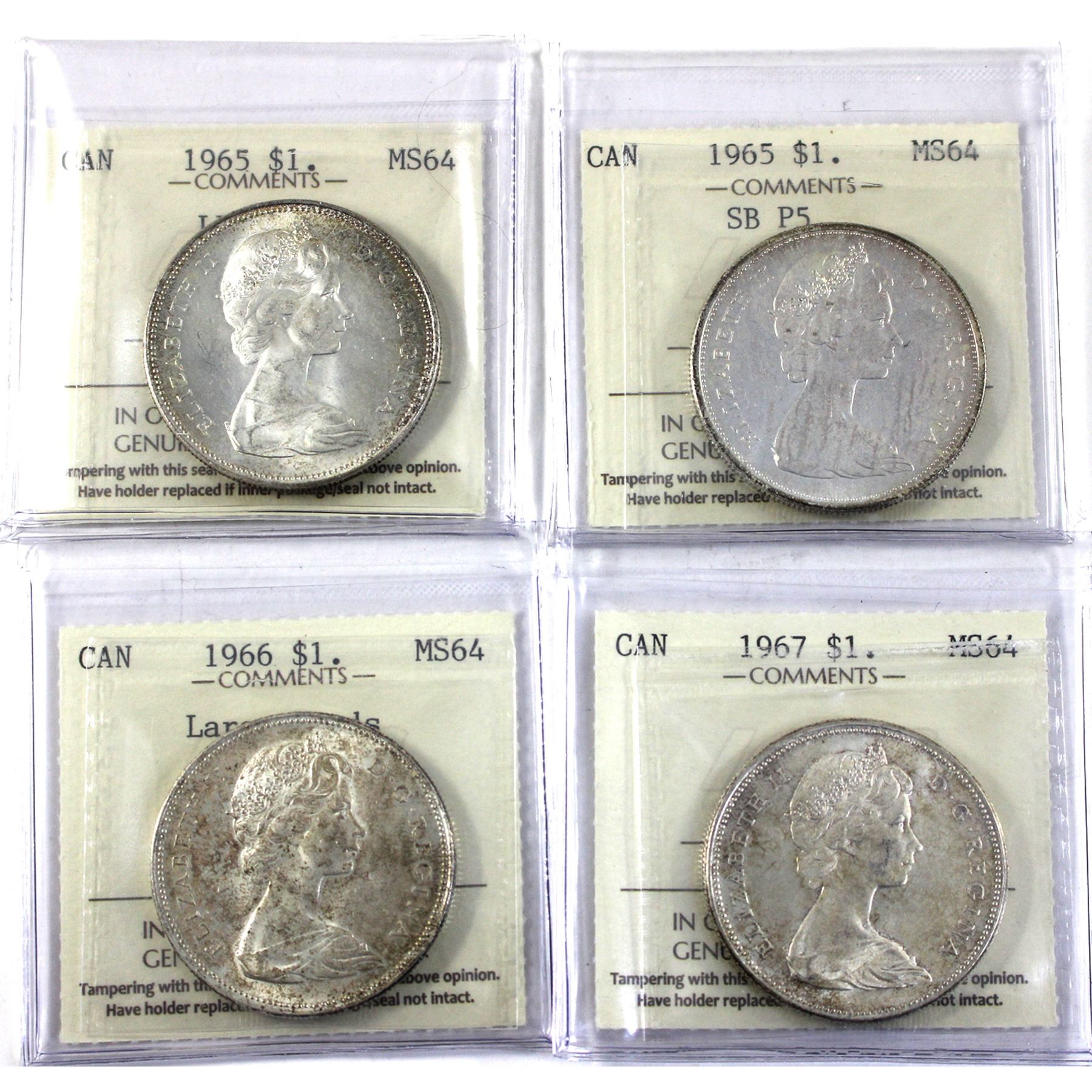 Silver $1 1965 LB B5, 1965 SB P5, 1966 Large Beads & 1967 ICCS MS64. 4pcs