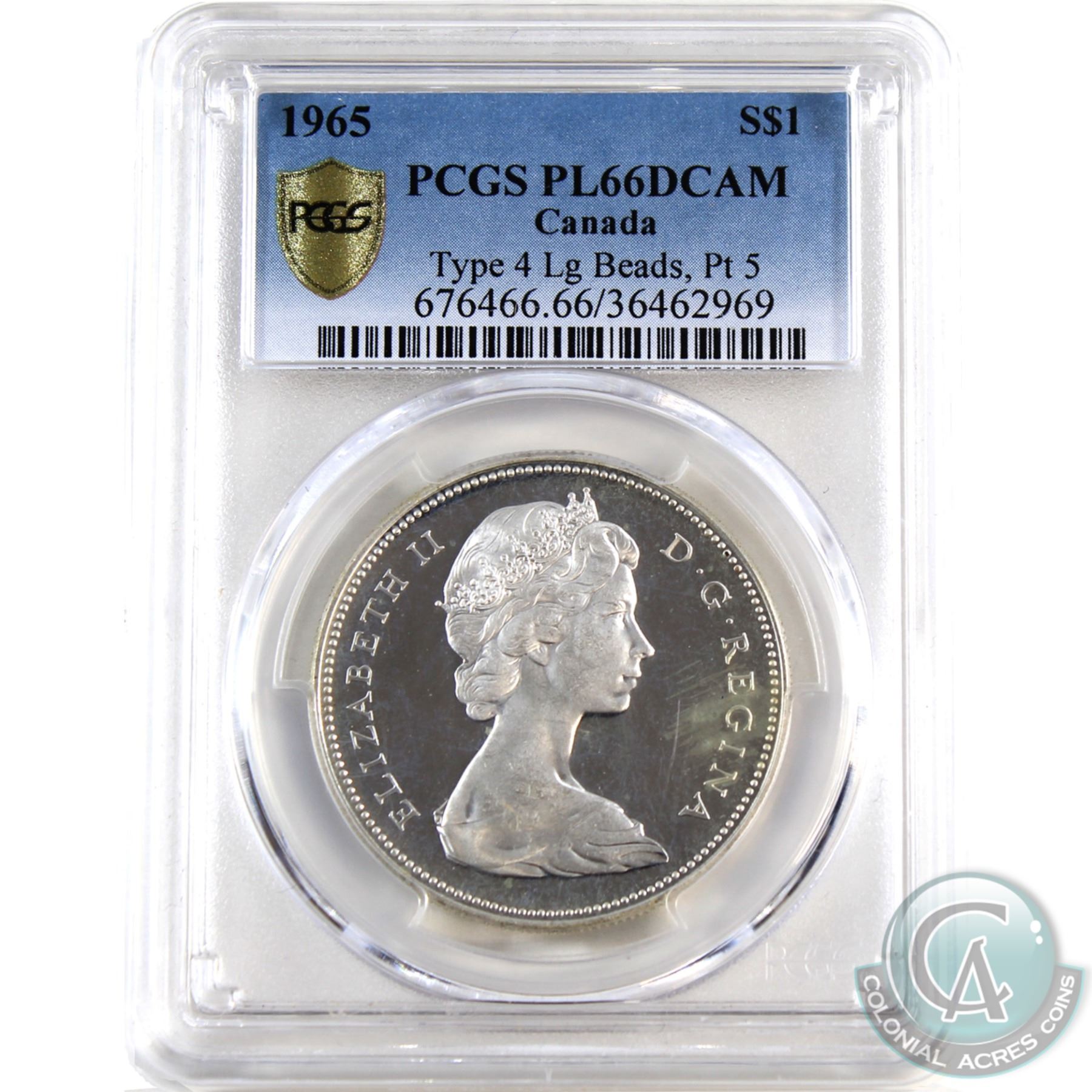 Silver $1 1965 LB Ptd5 PCGS Certified PL-66 DCAM. Shows as Ultra Heavy Cameo.