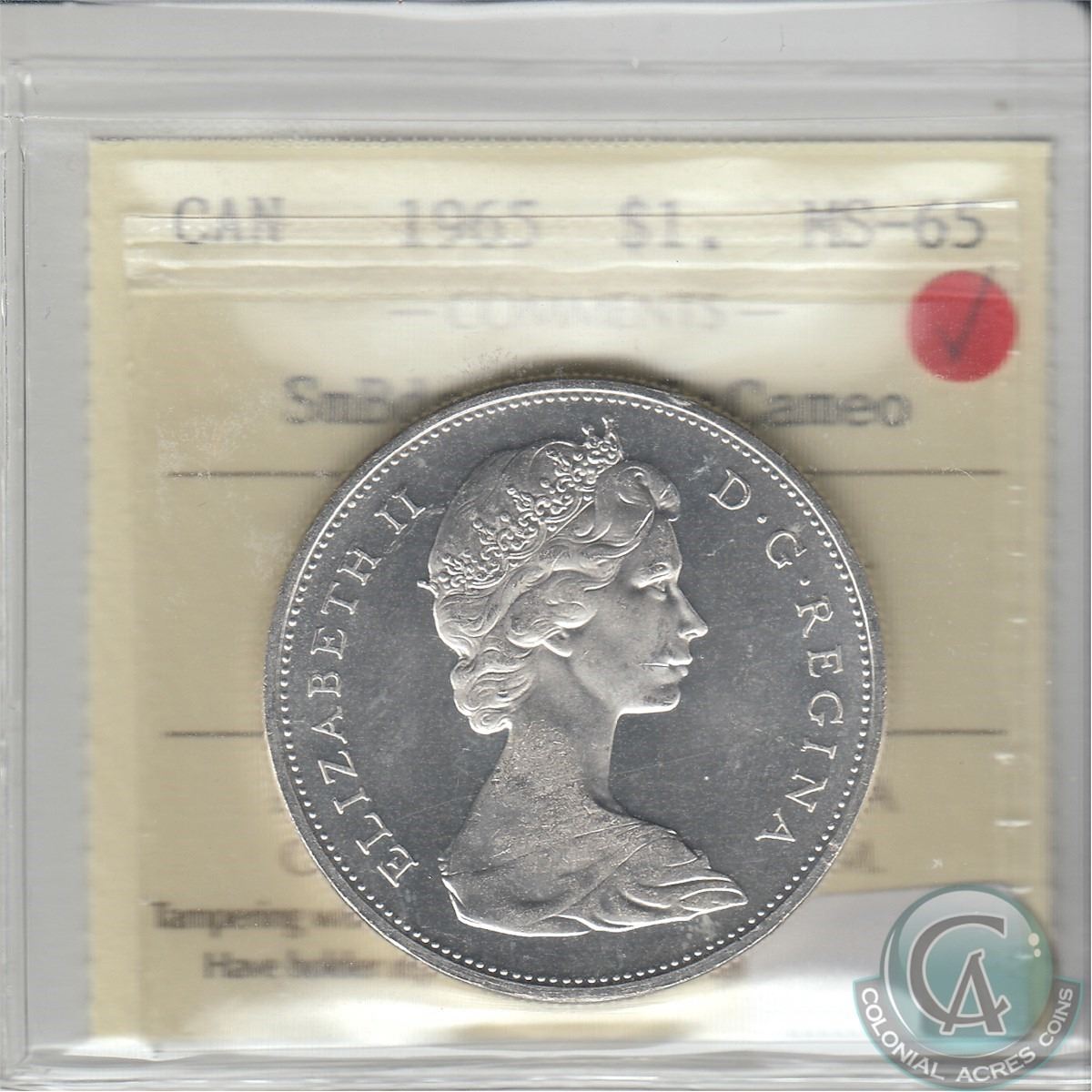 Silver $1 1965 Small Beads Pointed 5 ICCS MS-65 Cameo