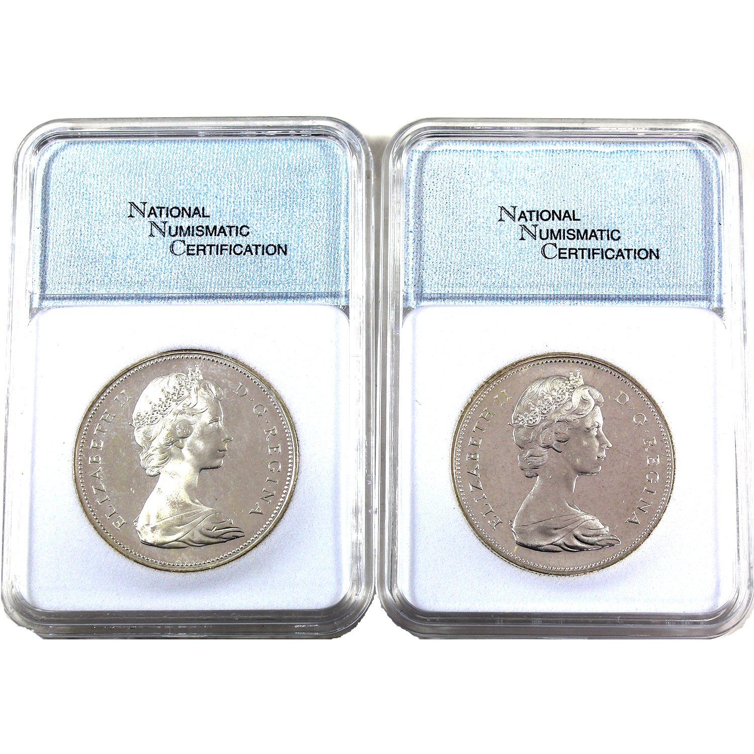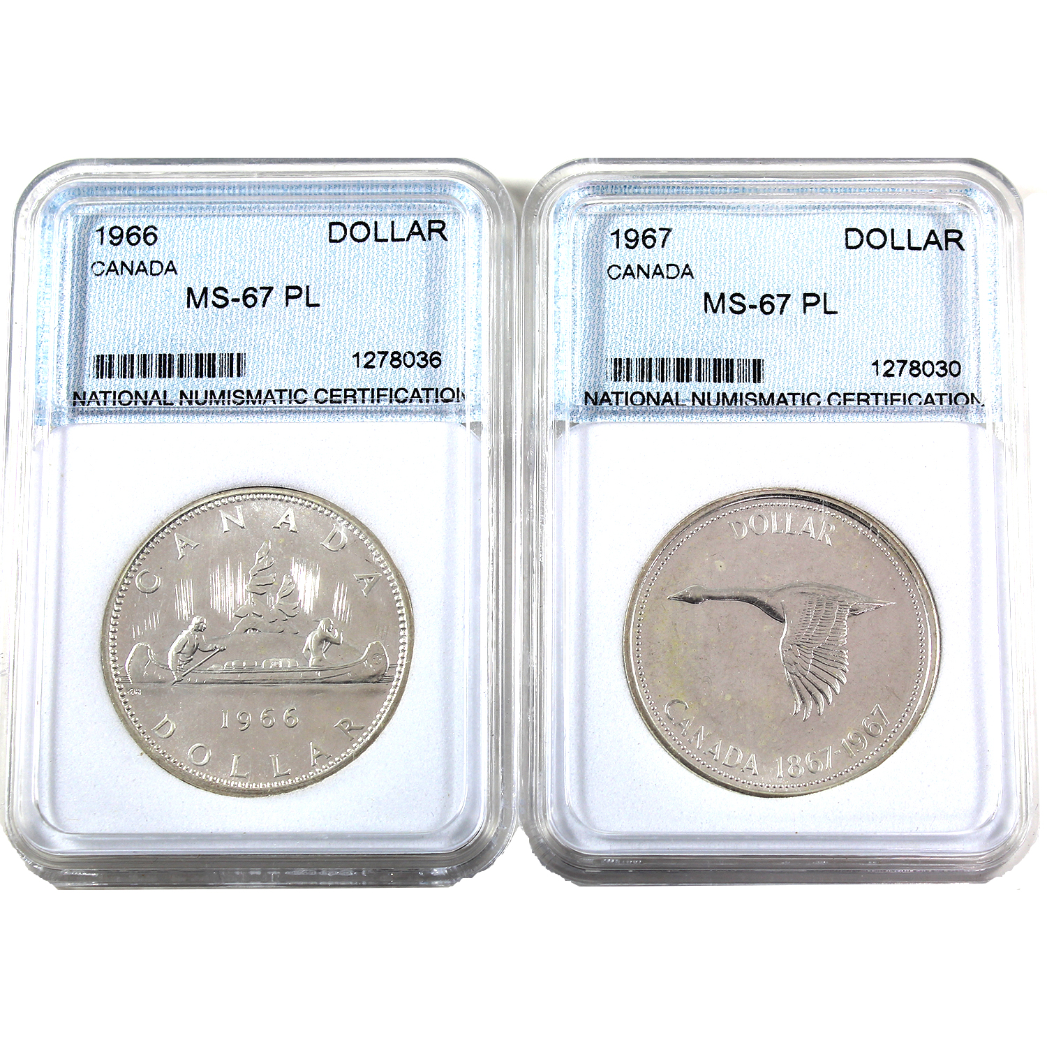Silver $1 1966 & 1967 NNC Certified MS67 PL. 2pcs.