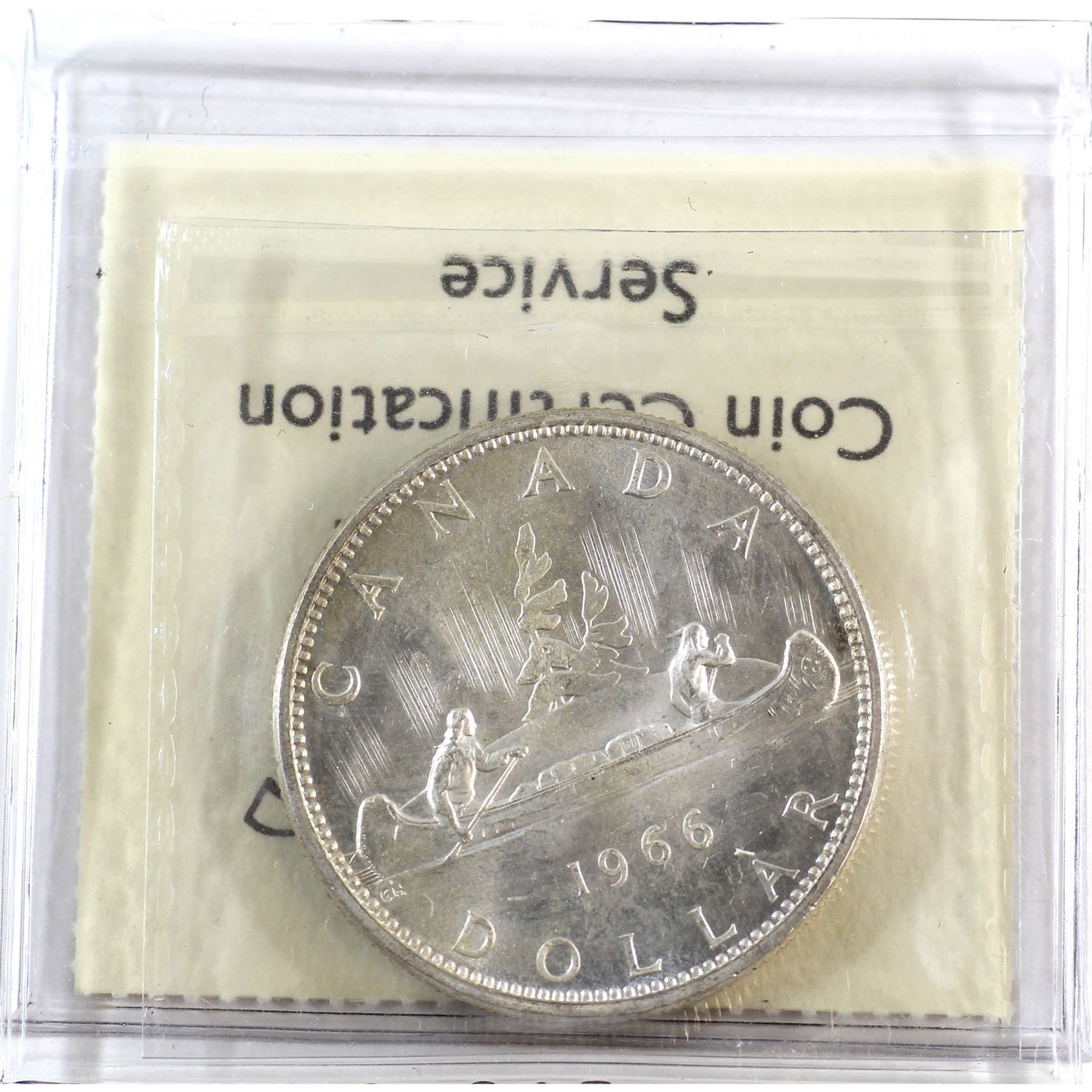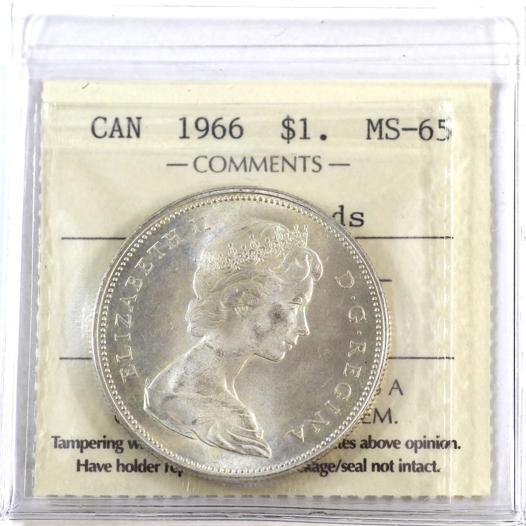 Silver $1 1966 Large Beads ICCS Certified MS-65. A choice coin with clean fields.