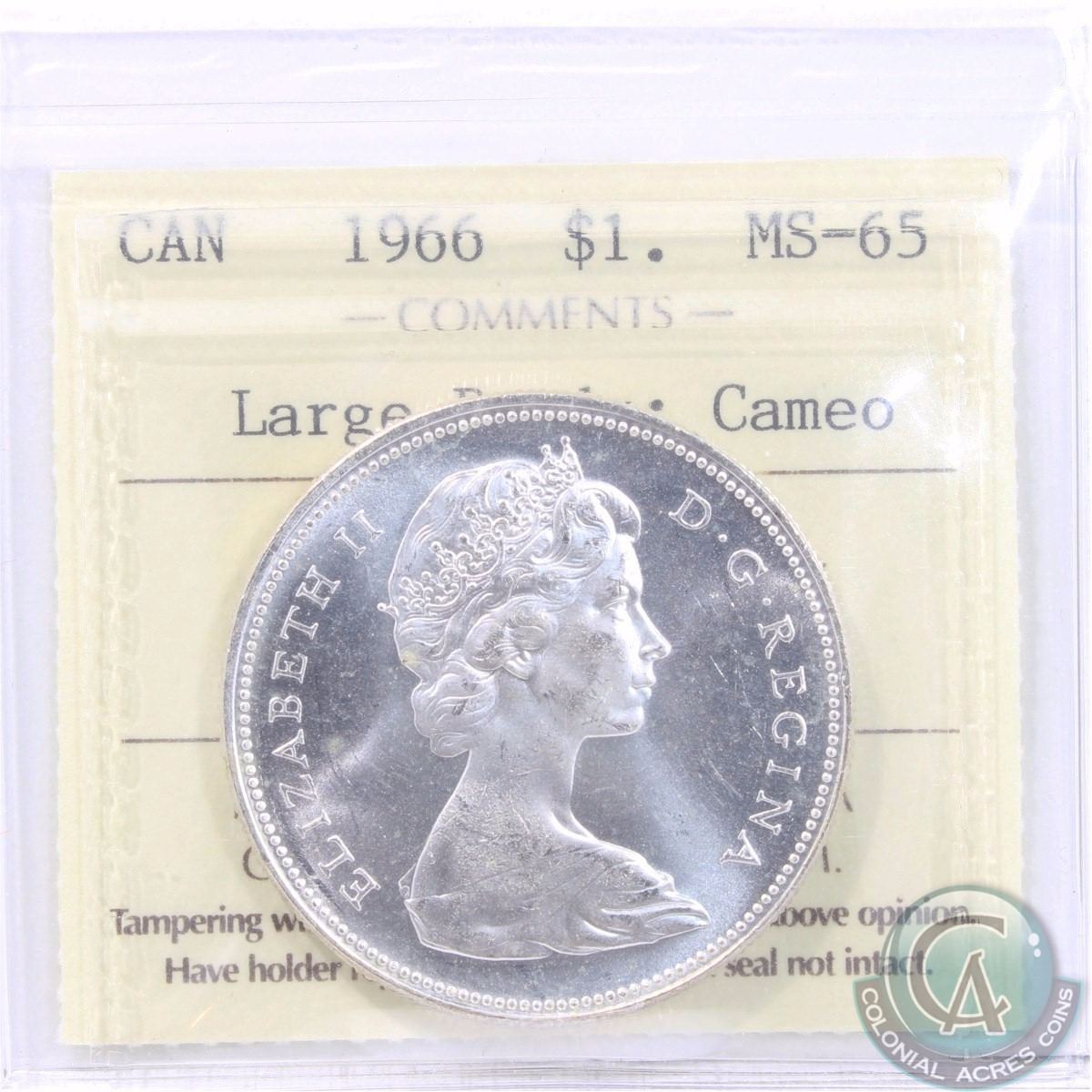 Silver $1 1966 Large Beads ICCS Certified MS-65 Cameo
