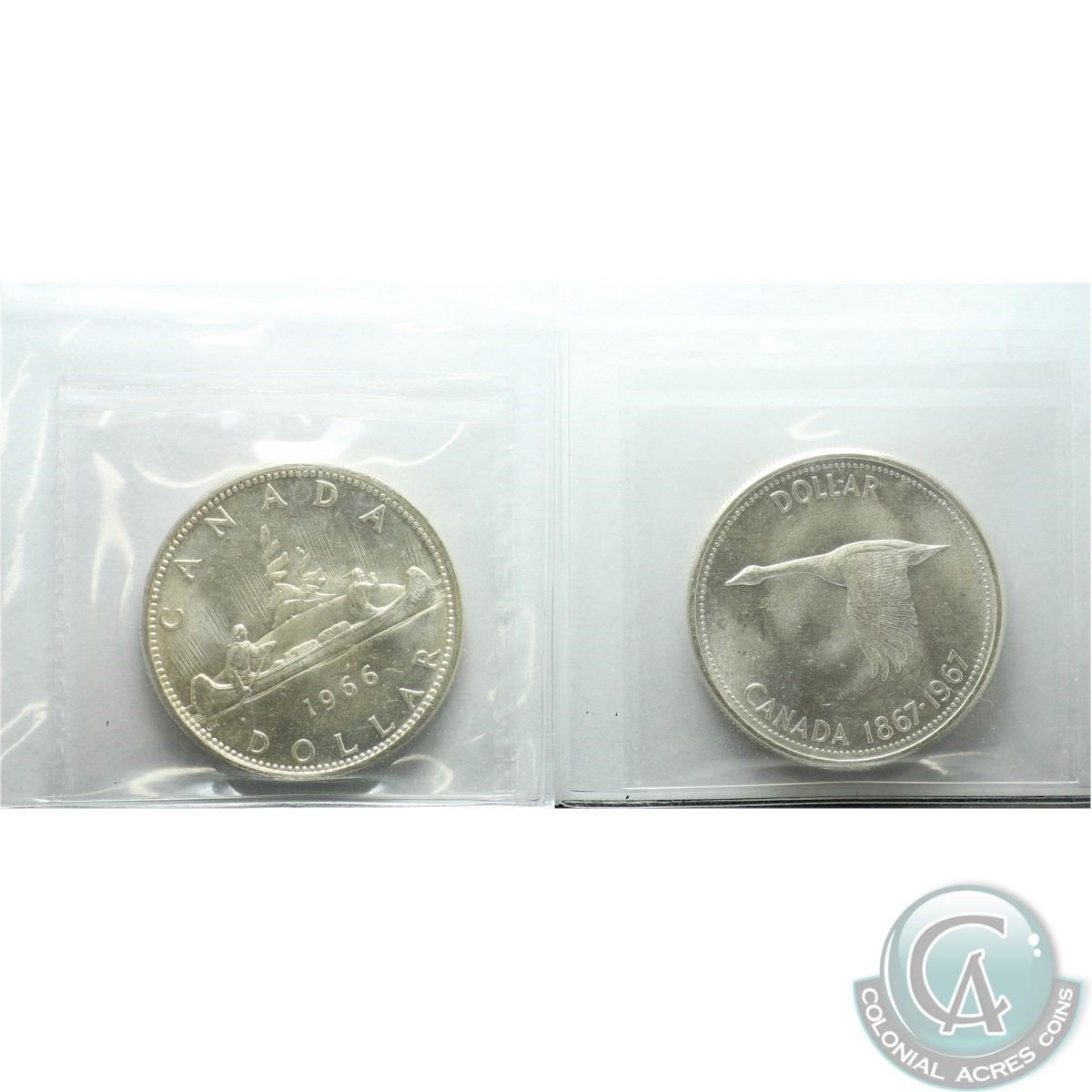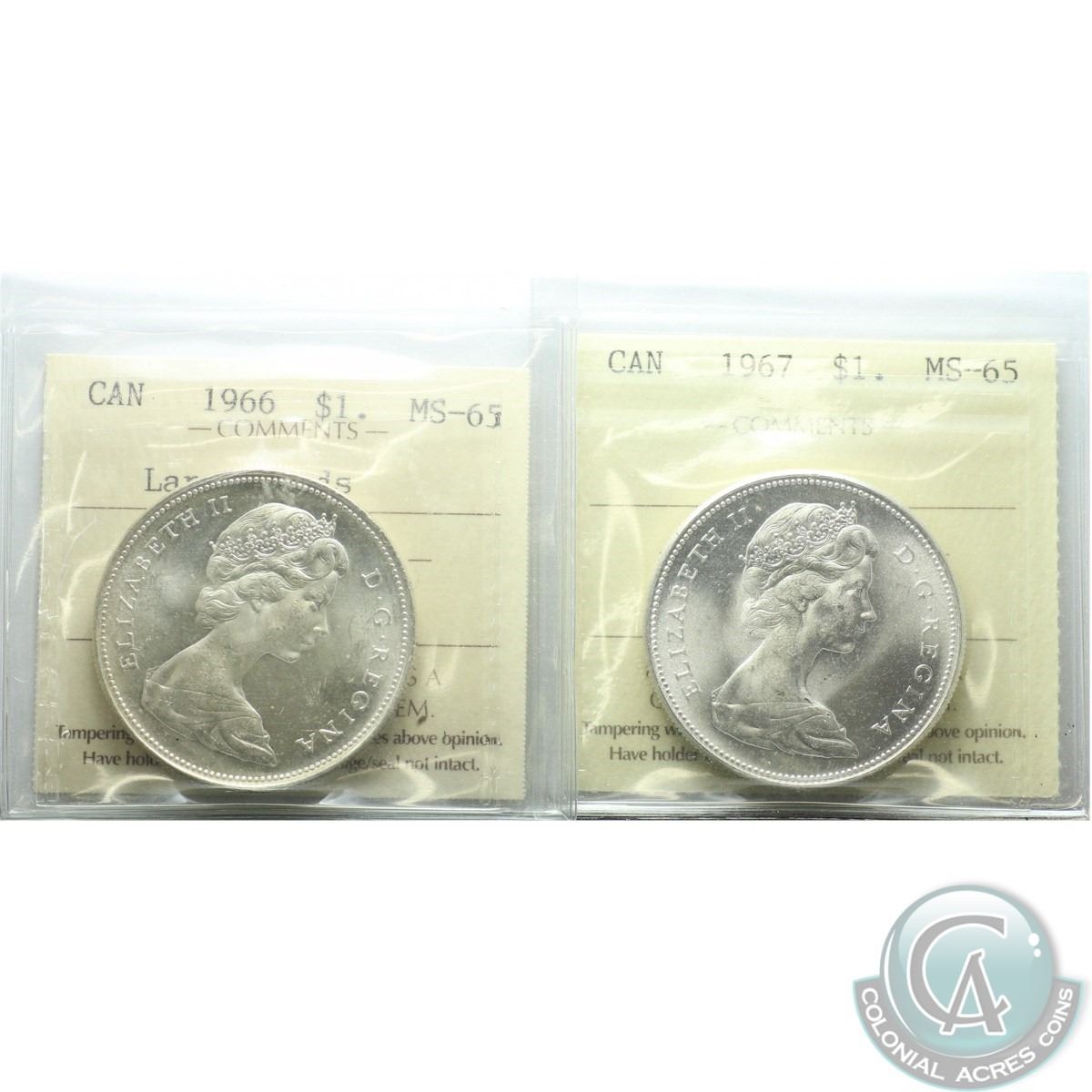 Silver $1 1966 LgBds & 1967 ICCS Certified MS-65. Choice lot with nice luster on both coins. 2pcs