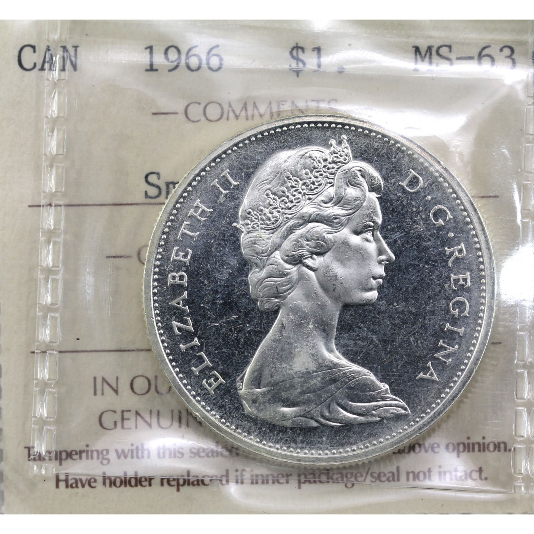 Silver $1 1966 SMALL BEADS ICCS Certified MS-63. *RARE!*