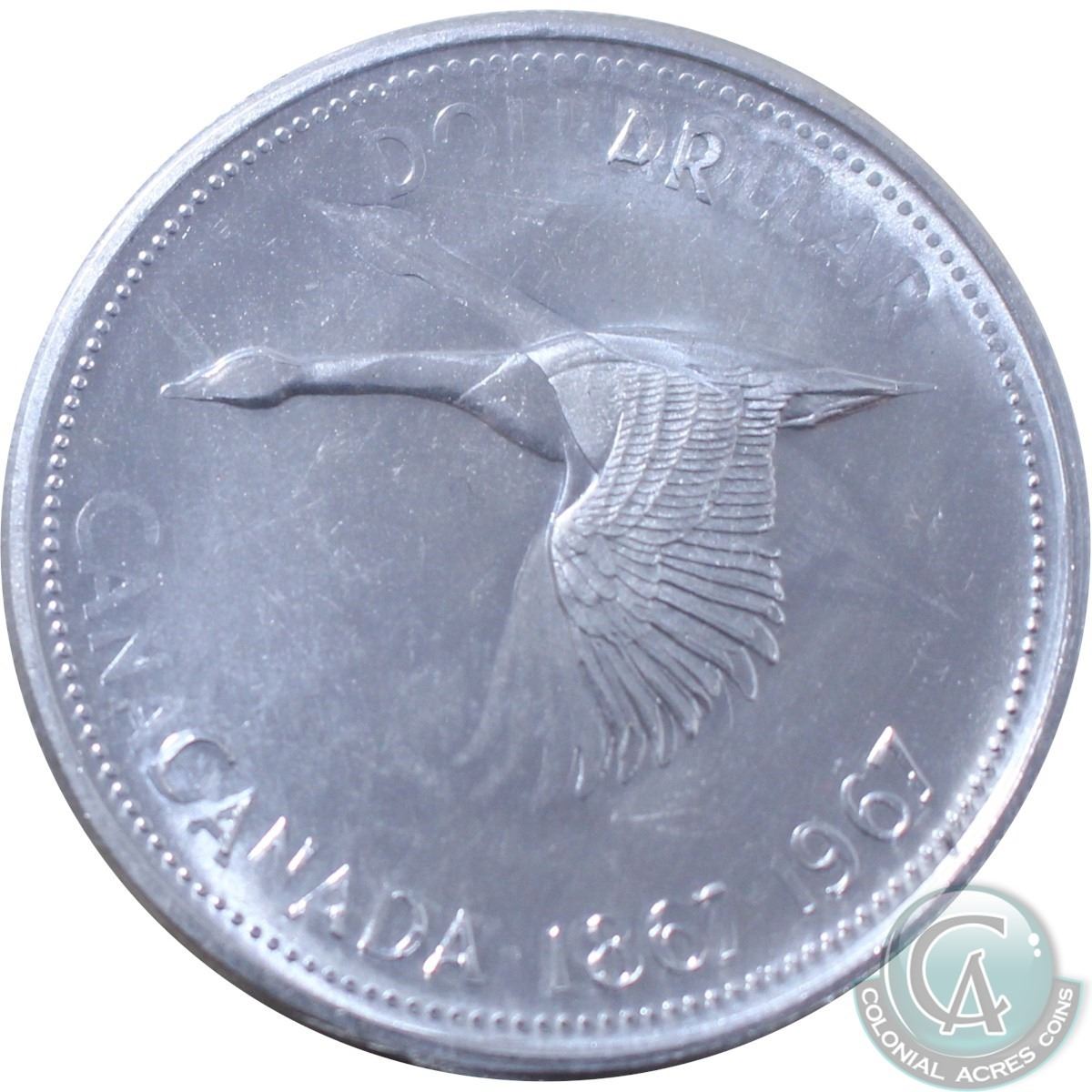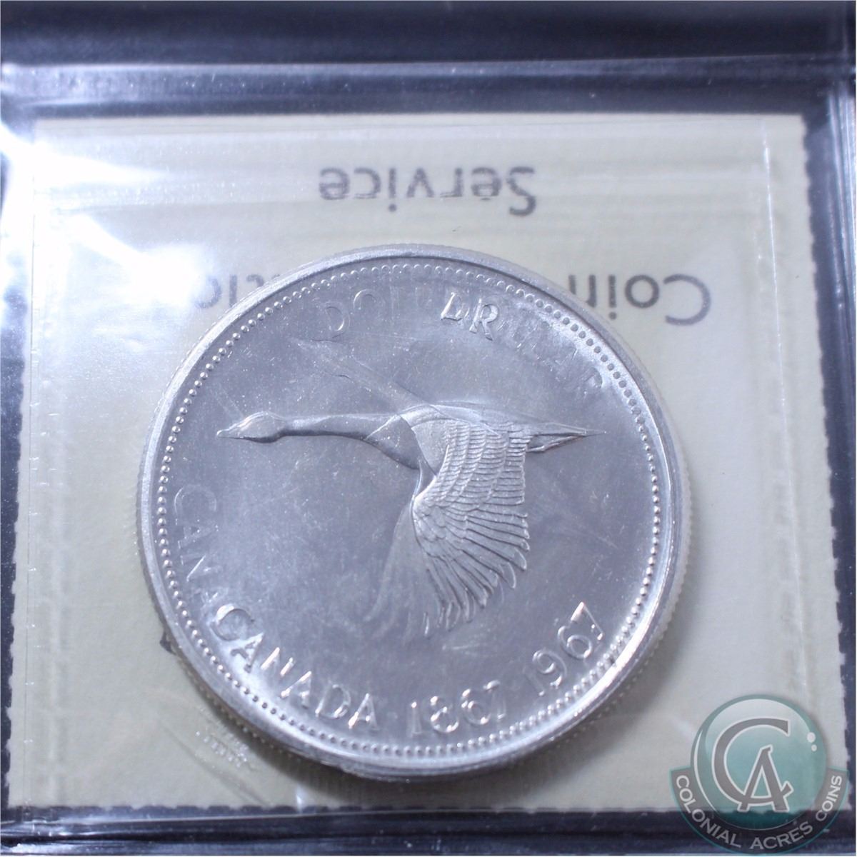 Silver $1 1967 Canada Double Stuck Error! ICCS MS-65. This impressive error is a bright lustrous coin with great eye appeal!