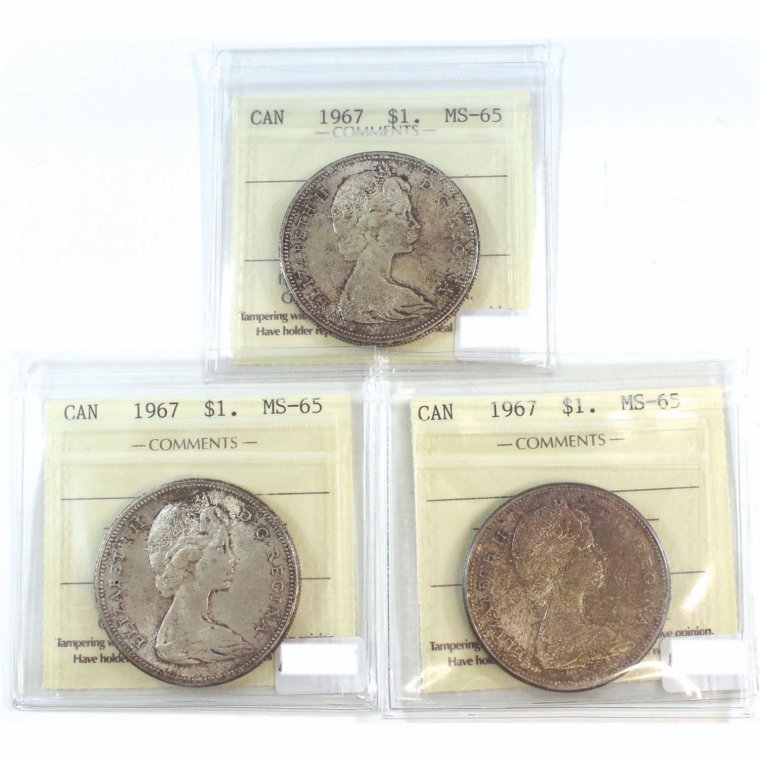 Silver $1 1967 ICCS Certified MS-65. 3pcs.