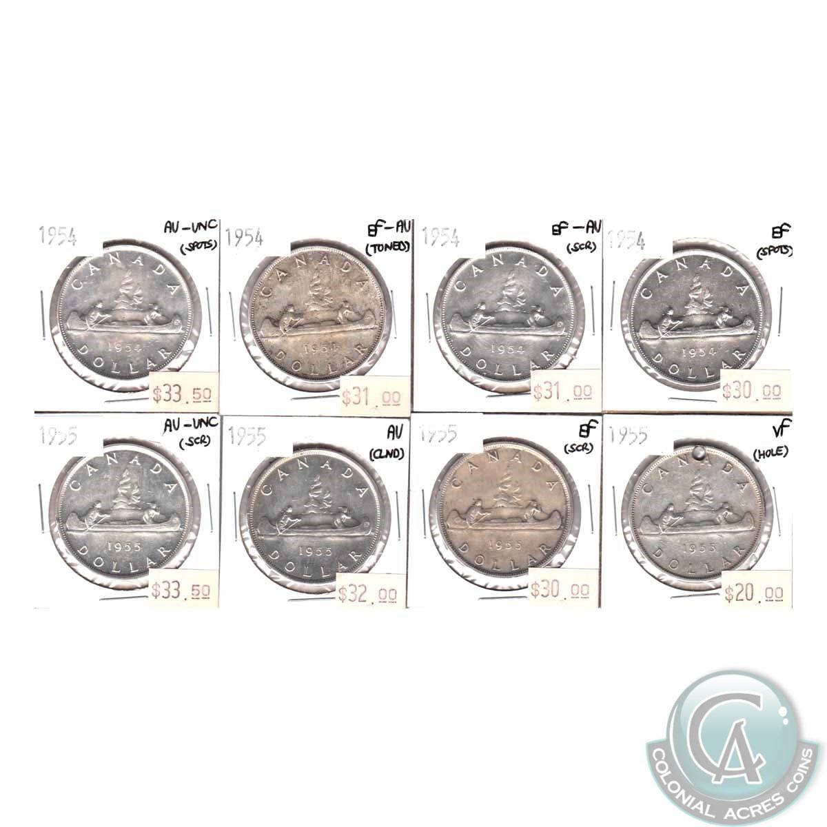 Silver $1 4x 1954 & 4x 1955 all VF-AU Condition. Coins have various impairments. Worth a good look. 8pcs