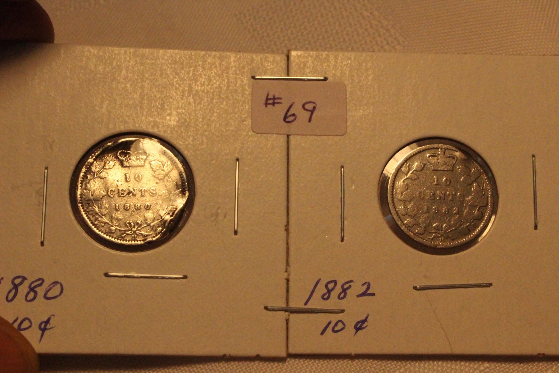 Silver 10 Cents (2) 1880H; 1882H (1882 is Damaged)