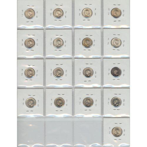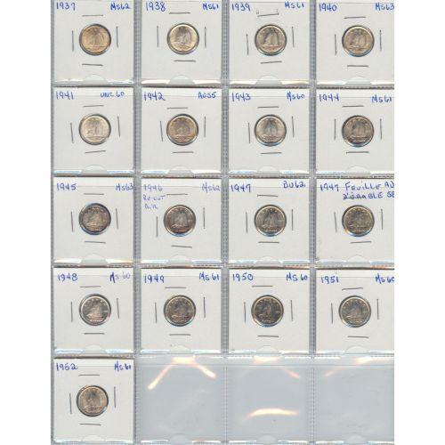 Silver 10 Cents Collection of 17 Georges VI; 1937 MS-60, 1938 MS-60, 1939 MS-60, 1940 MS-63, 1941 MS-60, 1942 AU-55, 1943 MS-60, 1944 MS-62, 1945 MS-63, 1946 MS-62, 1947 MS-62, 1947 ML MS-60, 1948 MS-62, 1949 MS-62, 1950 MS-60, 1951 MS-62 & 1952 MS.62. To be viewed, sold as is no return.