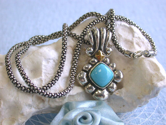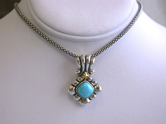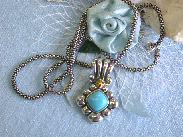Silver and 14k Yellow Gold Necklace with Turquoise. The length is approximately 19.5 inches long (chain) and weighs 20. grams