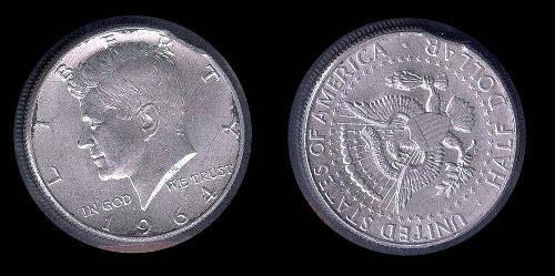 Silver 1964-D Kennedy Half w/clip; First year of issue error!