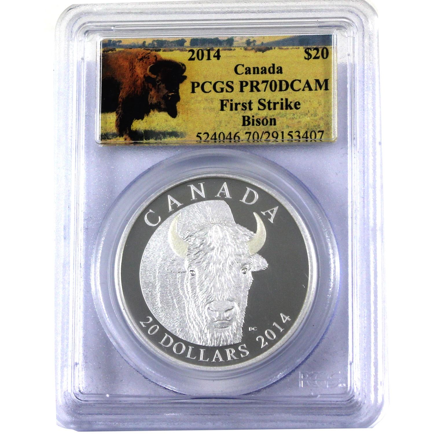 Silver $20 2014 Bison-Portrait PCGS Certified PR70, DCAM *First Strike* Coin is 1oz .9999 Fine (Tax Exempt)