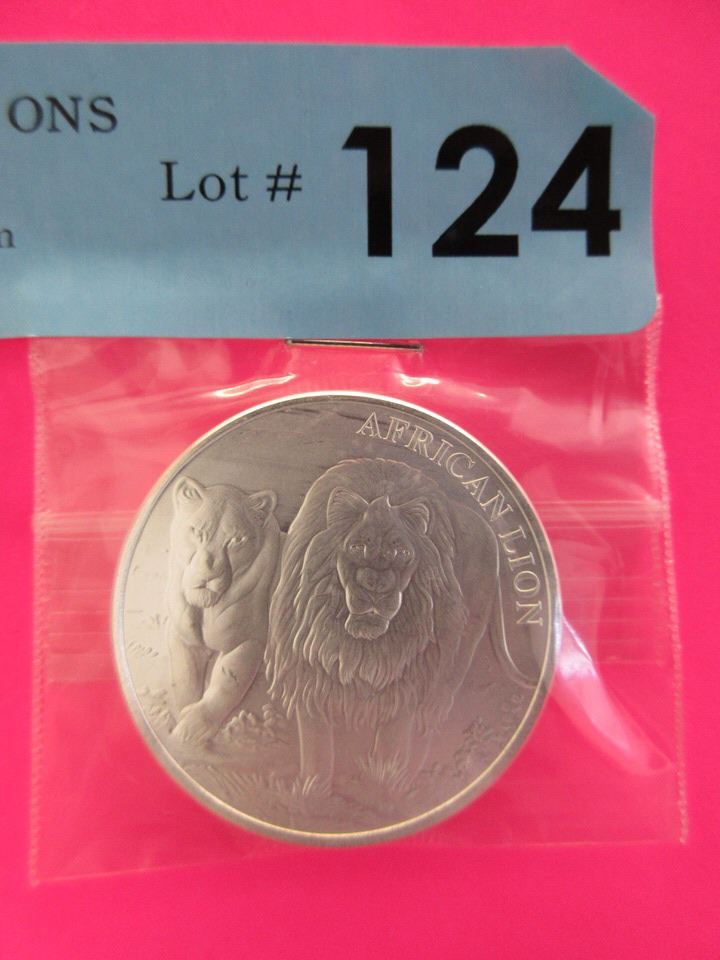 1 Ounce of .999 fine silver. Lion Motif. Tax exempt.