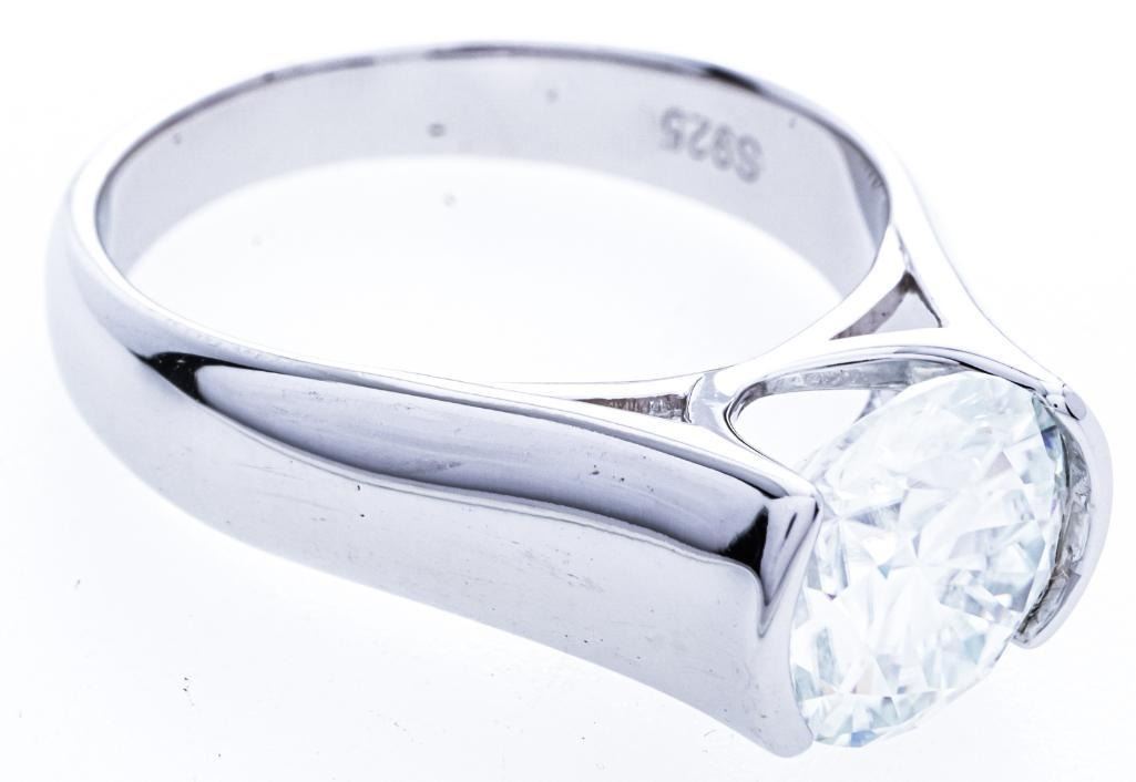 Silver 2ct. Bezel Set Solitaire, Genuine Moissanite