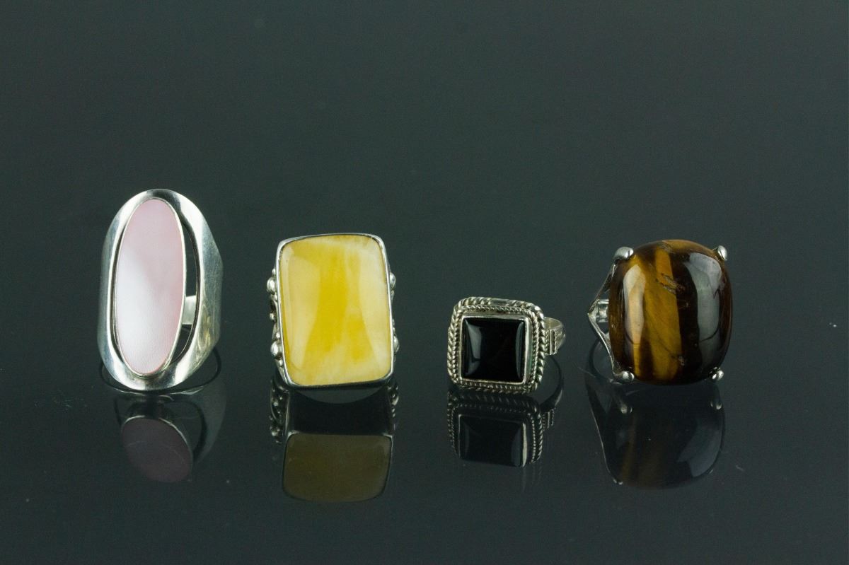 Four pieces of silver rings; inlaid with a variety of stone; with stamped 925 silver marks inside the rings; D: 8 cm, 43 grams