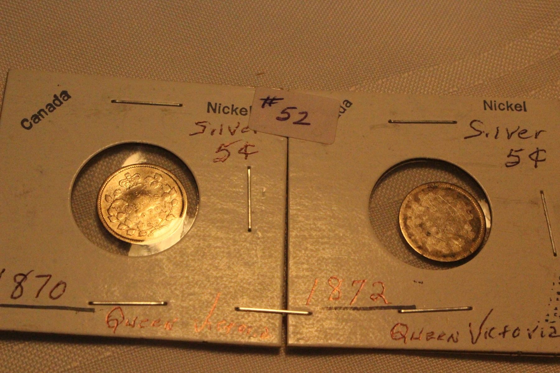 Silver 5 Cents (2) 1870; 1872 (1870 is Damaged)