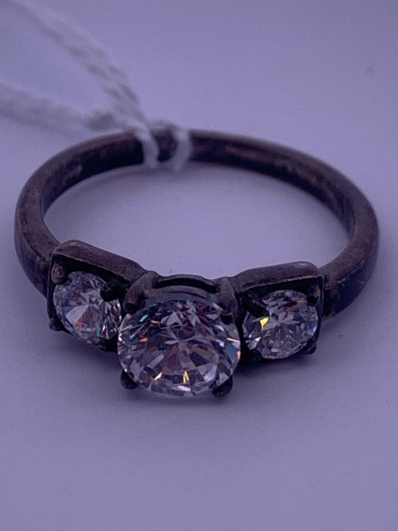 925 silver ring with 3 cubic zirconias; weighs 3.50 grams