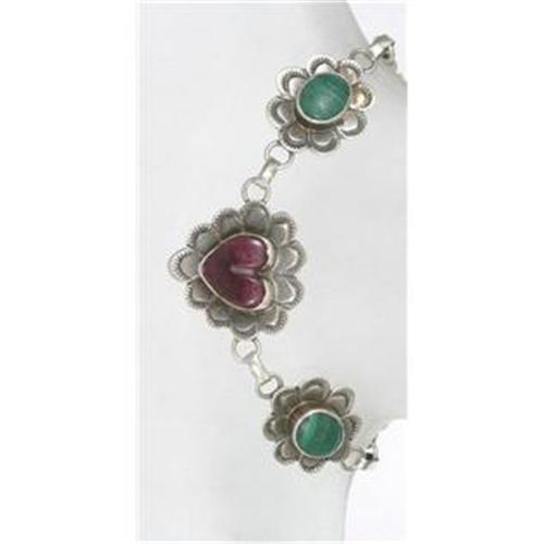 Many of you know me from my five years of national jewelry television shows, Estate Jewelry with Sam and Lisa and Jewelry and Collectables with Lisa LePaige and BuyRareStuff. Now I am honored to present these beautiful antique and estate finds to you through Go Antiques. Here is a beautiful Sterling Silver multigem bracelet wth blue lapis, malachite and agate. It measures 7.5" long while the heart charm is 1" x 1" and the others are 5/8" x 7/8". It weighs 16.7 grams. If you bid on this piece and do not win it, please visit my online store by clicking ?view this dealers other items? to see if it is still available for direct sale or offers. Personal shopping requests can be sent to ?email dealer?. Help make adoption a reality! Add a $4.00 ?Orphans R Gems? ?Support Adoption? blue silicone bracelet to your order or visit my non-profit Orphans R Gems website