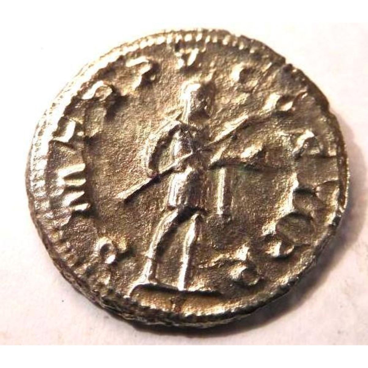 The antoninianus started out as a valuable silver coin worth two denarii. While it was gradually stripped of most of its silver content (a process that started shortly after the reign of Gordian III), the coins of Gordian III are almost completely silver, and quite attractive to the eye. Gordian III was the grandson of emperor Gordian I, and the nephew of Gordian II. he holds the distinction of being the youngest sole emperor in Roman history. While the Senate elected Pupienus and Balbinus to serve as co-emperors, they were unpopular. It was a time of great civil unrest (called the Third Century Crisis), and the enate decided to appoint the young Gordian III as Caesar. Upon the deaths of Pupienus and Balbinus, Gordian III became emperor at the age of 13. JC-30101-158