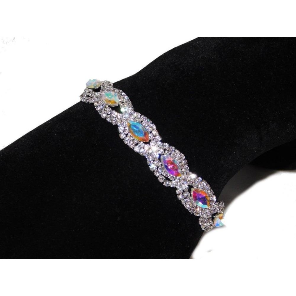 Upscale Designer Jewelry (Costume) Item Description Glamorous Sparkling Rhinestone Crystal Bracelet. With 1.1/2" Extend. Silver-tone Plated. Style: Bracelet Main Stone: Rhinestone Crystal Features: Lobster Clasp Material: Glass Color: Ab Iridescent Length (inches): 7" + 1.1/2" Metal: Alloy - 10089-040618-EB-40784