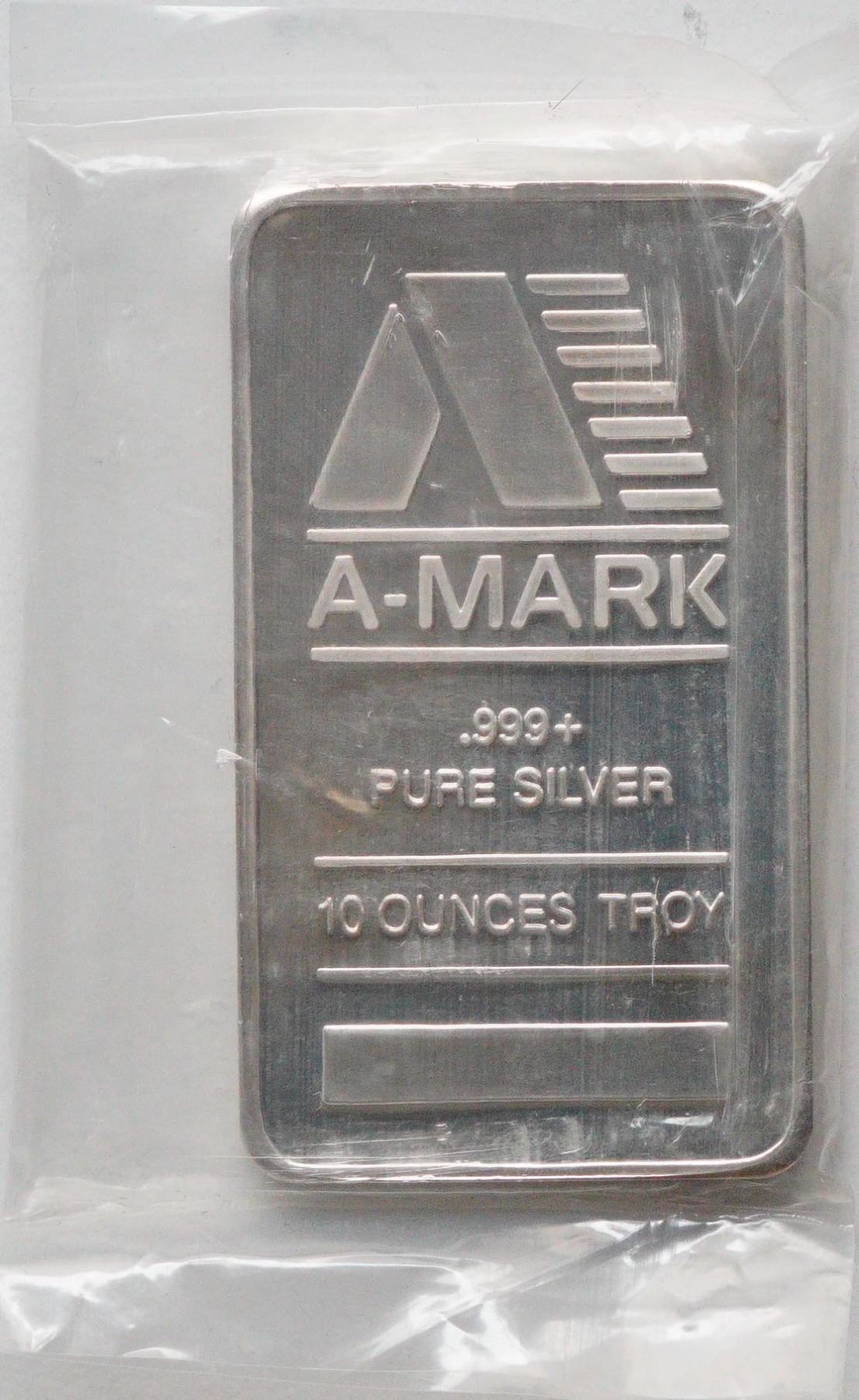 Silver Bar; 10 OZ Silver Bar .999 Fine Silver - A-Mark - Tax exempt