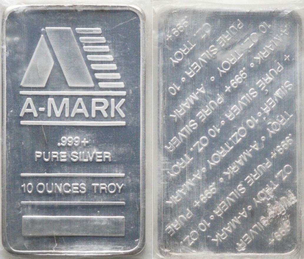 Silver Bar; 10 OZ Silver Bar .999 Fine Silver - A-Mark - Tax exempt