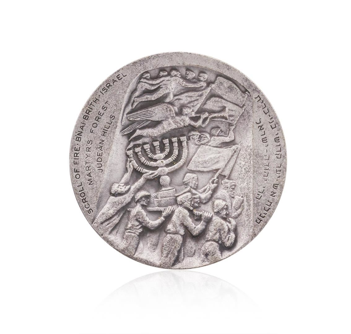 One set of silver medals featuring: (1) Bar Mitzvah medal featuring a portrait of a Bar Mitzvah ceremony on the obverse and a portrait of the Ten Commandments on the reverse. (1) Jerusalem medal featuring a portrait of the Scroll of Fire on the obverse and a portrait of Jerusalem on the reverse.