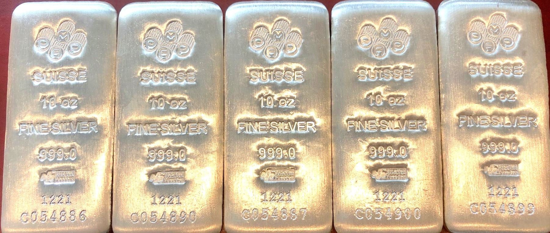 Silver Bars; 10 OZ Silver Bar - Lot of 5 bars - 50 OZ total - .999 pure silver - Tax exempt
