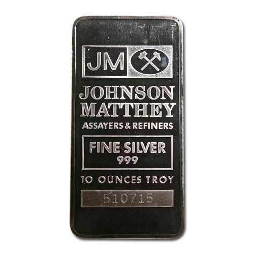 Silver Bars: Johnson Matthey 10 oz Bar (Pressed, JM Log **|**|** Silver Bars: Johnson Matthey 10 oz Bar (Pressed, JM Logo) .999 fine ; MSRP: $550