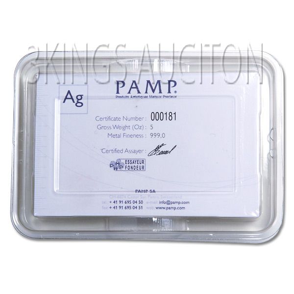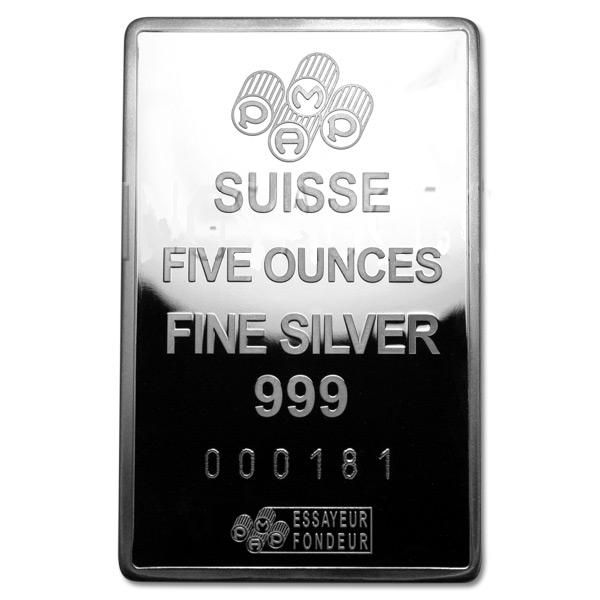 Silver Bars: Pamp Suisse 5 oz Bar .999 fine **|**|** Silver Bars: Pamp Suisse 5 oz Bar .999 fine ; MSRP: $400